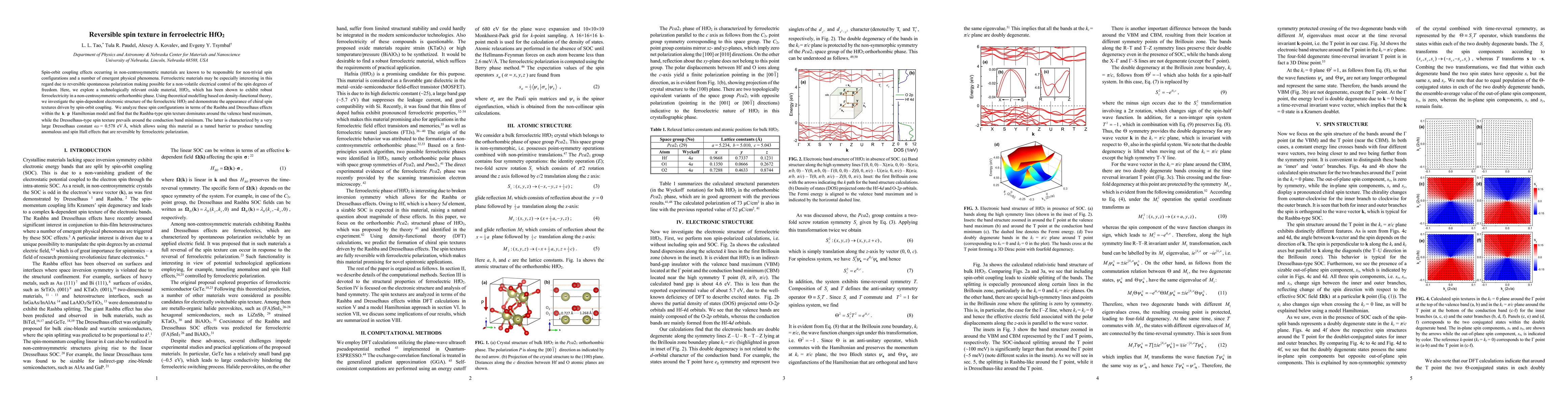 This paper investigates the spin-orbit coupling effects in ferroelectric HfO2, revealing chiral spin textures driven by the Rashba and Dresselhaus effects. The study shows that HfO2 can enable reversible, non-volatile electrical control of spin degrees of freedom, with significant potential for applications involving tunneling anomalous and spin Hall effects.