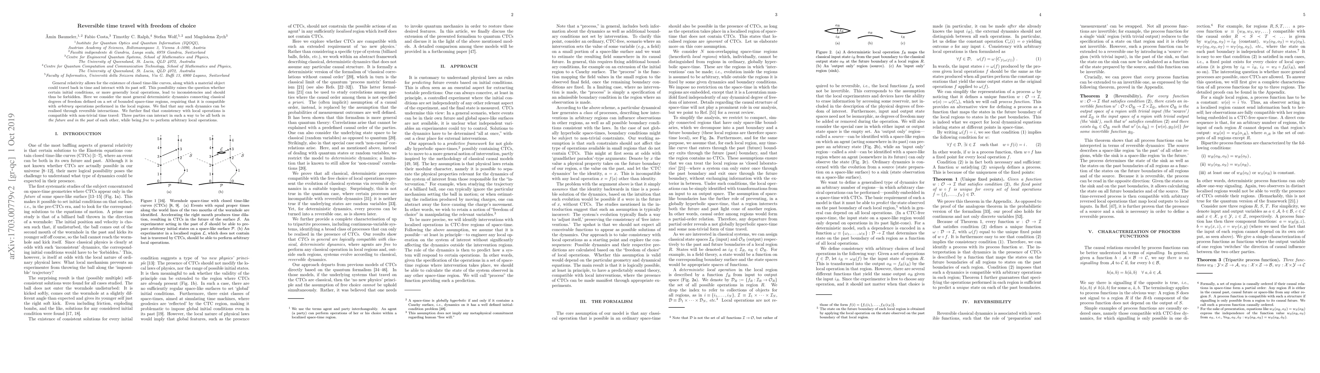 Researchers found that reversible time travel with freedom of choice is possible under certain conditions, allowing for interactions between past and future selves while maintaining consistency with local operations.