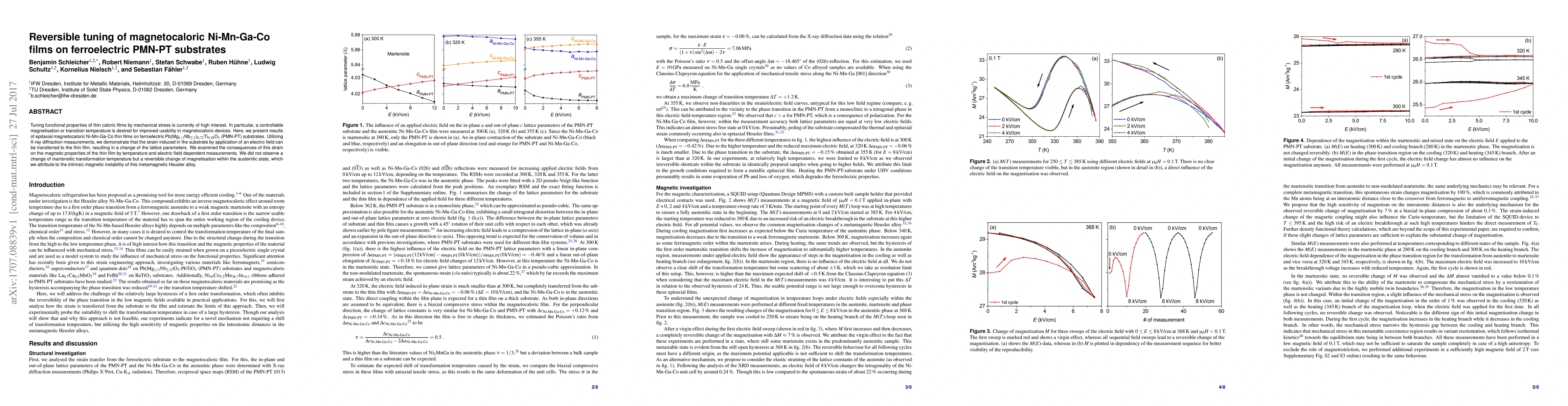 Researchers created thin films of magnetocaloric Ni-Mn-Ga-Co on ferroelectric substrates that can be tuned by applying mechanical stress through electric fields, changing their magnetic properties without altering the transformation temperature.