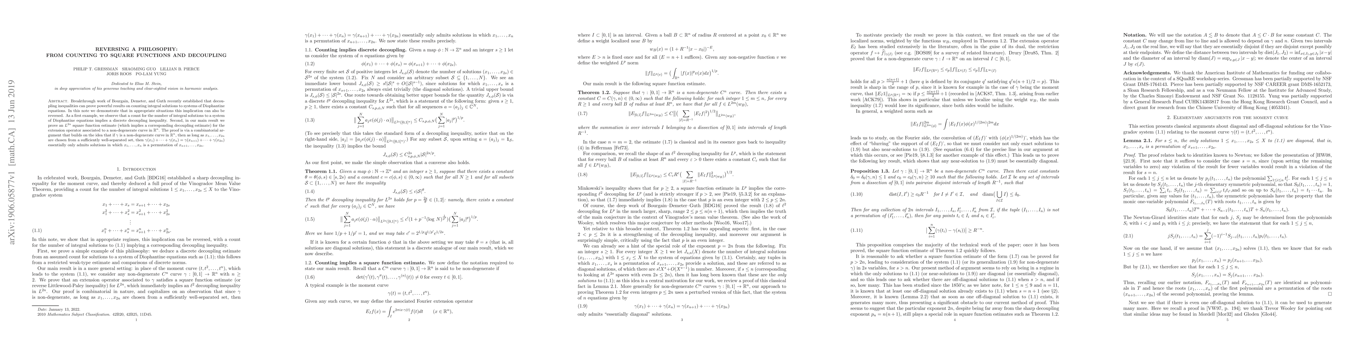 Researchers demonstrate that a count of integral solutions to Diophantine equations implies a decoupling inequality, and also prove an L^2n square function estimate for non-degenerate curves in R^n.