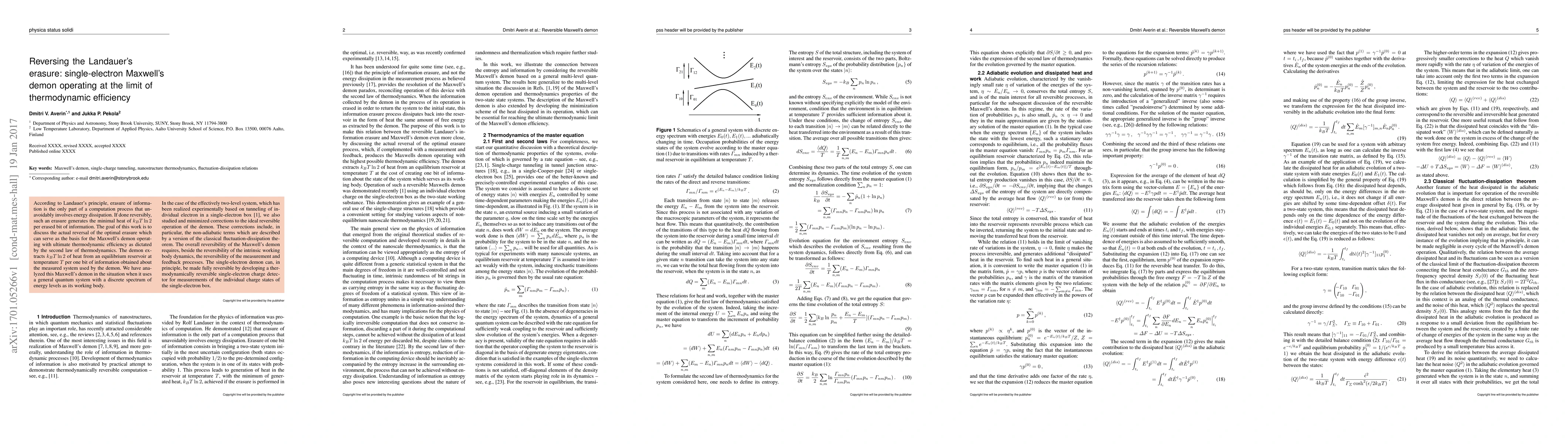 According to Landauer's principle, erasure of information is the only part of a computation process that unavoidably involves energy dissipation. If done reversibly, such an erasure generates the minimal heat of $k_BT\ln 2$ per erased bit of information. The goal of this work is to discuss the actual reversal of the optimal erasure which can serve as the basis for the Maxwell's demon operating with ultimate thermodynamic efficiency as dictated by the second law of thermodynamics. The demon extracts $k_BT\ln 2$ of heat from an equilibrium reservoir at temperature $T$ per one bit of information obtained about the measured system used by the demon. We have analyzed this Maxwell's demon in the situation when it uses a general quantum system with a discrete spectrum of energy levels as its working body. In the case of the effectively two-level system, which has been realized experimentally based on tunneling of individual electron in a single-electron box [J.V. Koski et al., PNAS 111, 13786 (2014)], we also studied and minimized corrections to the ideal reversible operation of the demon. These corrections include, in particular, the non-adiabatic terms which are described by a version of the classical fluctuation-dissipation theorem. The overall reversibility of the Maxwell's demon requires, beside the reversibility of the intrinsic working body dynamics, the reversibility of the measurement and feedback processes. The single-electron demon can, in principle, be made fully reversible by developing a thermodynamically reversible single-electron charge detector for measurements of the individual charge states of the single-electron box.