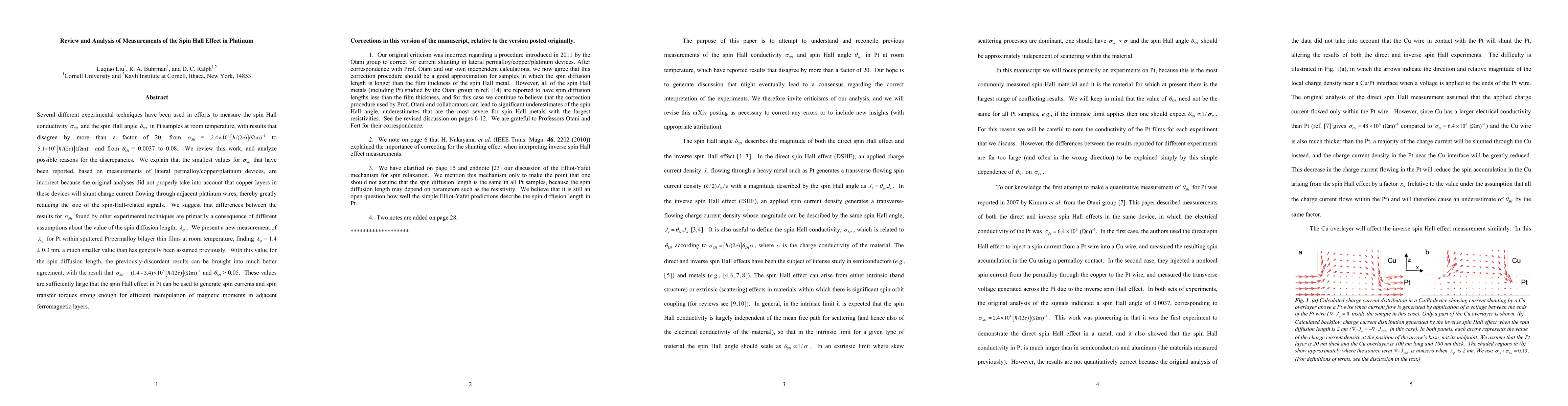 Researchers reanalyzed measurements of the spin Hall effect in platinum, finding smaller spin diffusion lengths that reconcile previous discrepancies, resulting in more consistent spin Hall conductivities and angles.