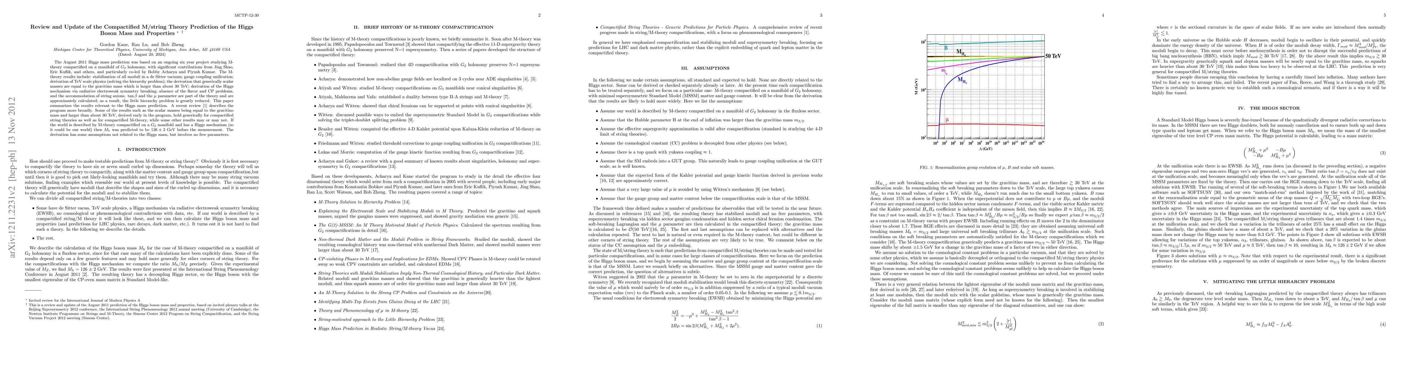 This paper reviews and updates the M-theory prediction for the Higgs boson mass, predicting a mass of 126 +/- 2 GeV based on a six-year project studying M-theory compactified on a G2 manifold. The study stabilizes moduli, unifies gauge couplings, and addresses the hierarchy problem without free parameters.
