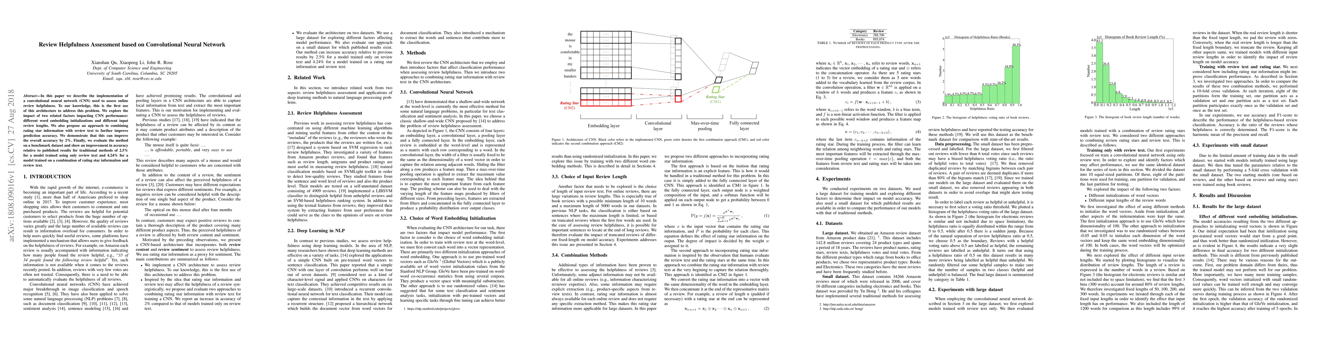 A study uses a convolutional neural network to assess online review helpfulness, achieving a 2% improvement in accuracy by combining rating star information with review text.