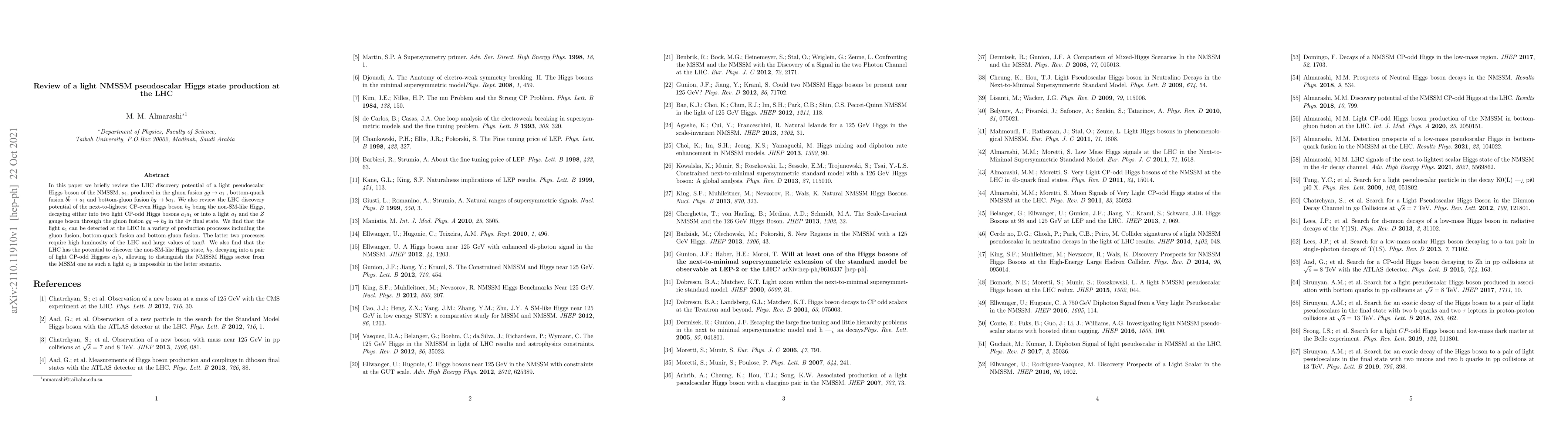 This paper reviews the potential for the LHC to discover a light pseudoscalar Higgs boson ($a_1$) in the NMSSM via gluon fusion, bottom-quark fusion, and bottom-gluon fusion. It also examines the LHC's capability to detect the next-to-lightest CP-even Higgs boson ($h_2$), which can decay into a pair of $a_1$ bosons, distinguishing NMSSM from MSSM.