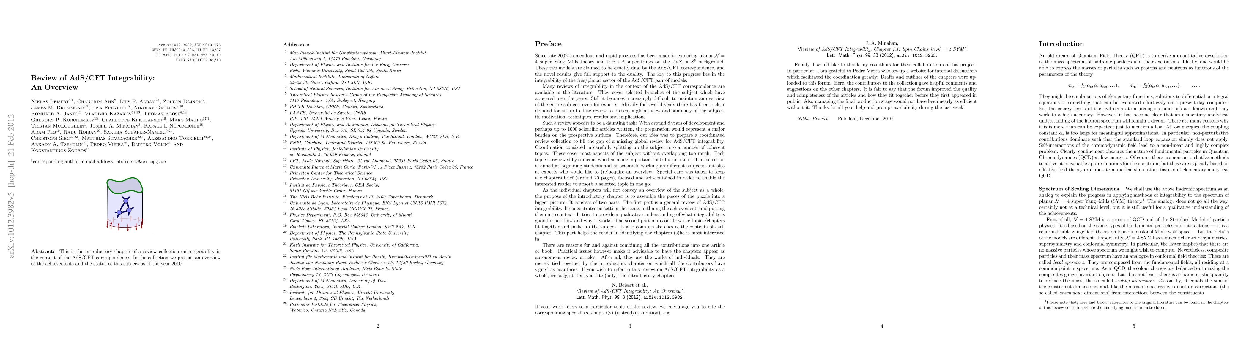 This is the introductory chapter of a review collection on integrability in the context of the AdS/CFT correspondence. In the collection we present an overview of the achievements and the status of this subject as of the year 2010.