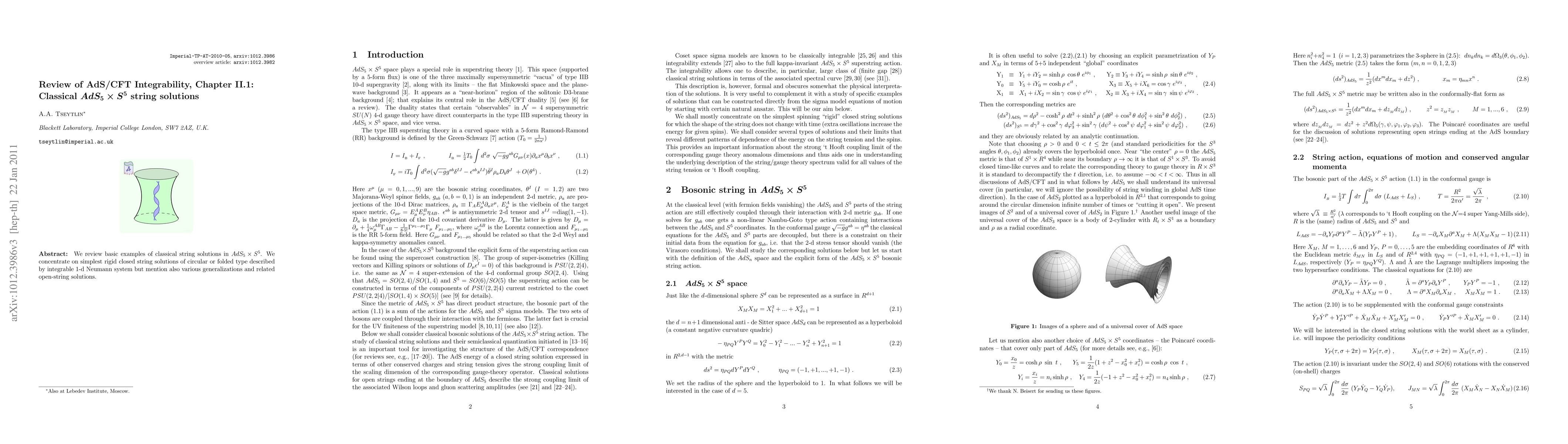 This paper reviews classical string solutions in AdS5xS5 space, focusing on rigid closed string solutions that can be described as integrable 1-d Neumann systems, with implications for understanding string theory and its connections to conformal field theories.