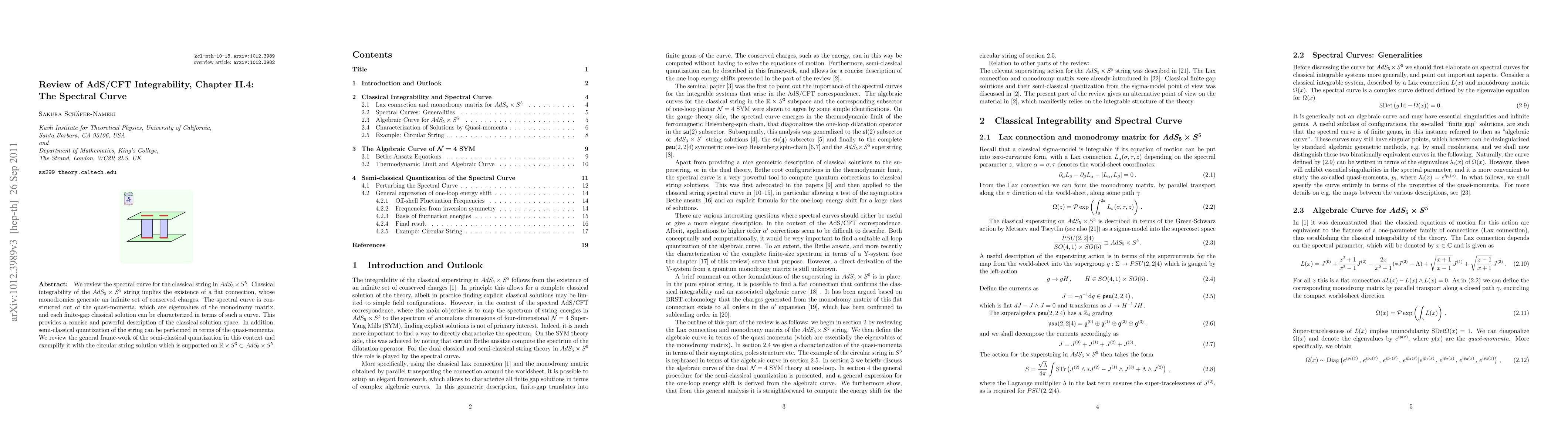 This paper reviews the spectral curve for the classical string in AdS5xS5, emphasizing its role in classical integrability and the generation of conserved charges. It also discusses the semi-classical quantization of the string in terms of quasi-momenta, exemplified by the circular string solution.