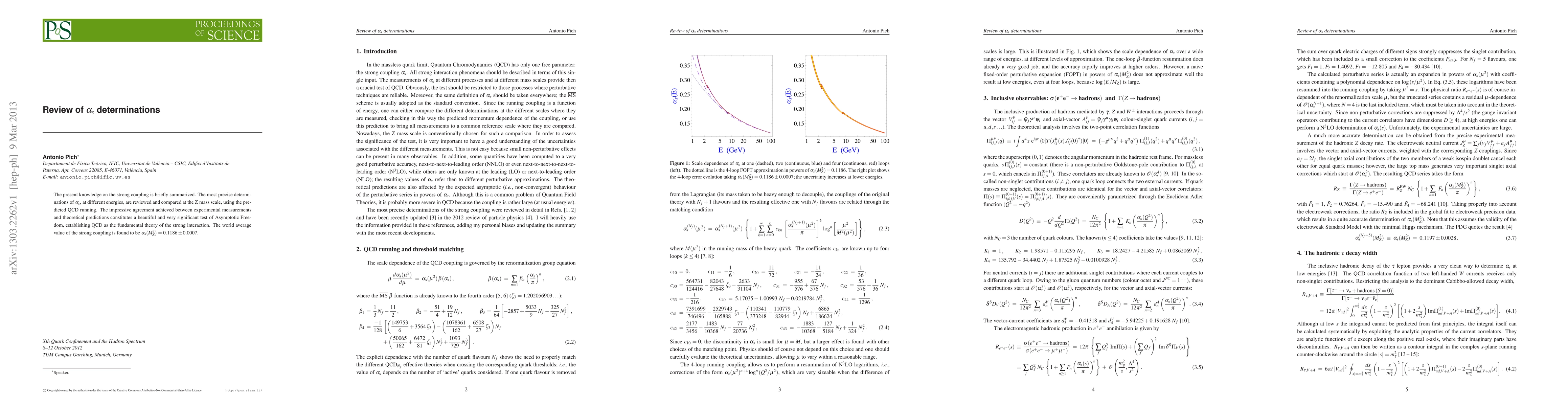 The present knowledge on the strong coupling is briefly summarized. The most precise determinations of alpha_s, at different energies, are reviewed and compared at the Z mass scale, using the predicted QCD running. The impressive agreement achieved between experimental measurements and theoretical predictions constitutes a beautiful and very significant test of Asymptotic Freedom, establishing QCD as the fundamental theory of the strong interaction. The world average value of the strong coupling is found to be alpha_s(M_Z^2)= 0.1186 \pm 0.0007.