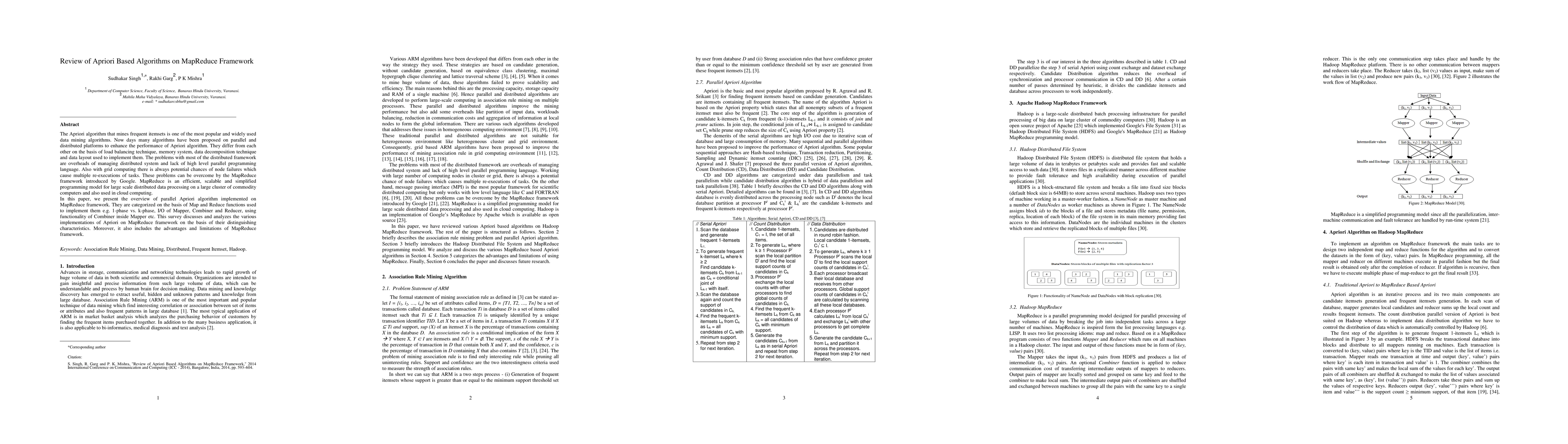 This paper reviews parallel Apriori algorithms implemented on the MapReduce framework, categorizing them based on their Map and Reduce functions and analyzing their performance. It highlights the efficiency and scalability of MapReduce in addressing distributed data processing challenges.