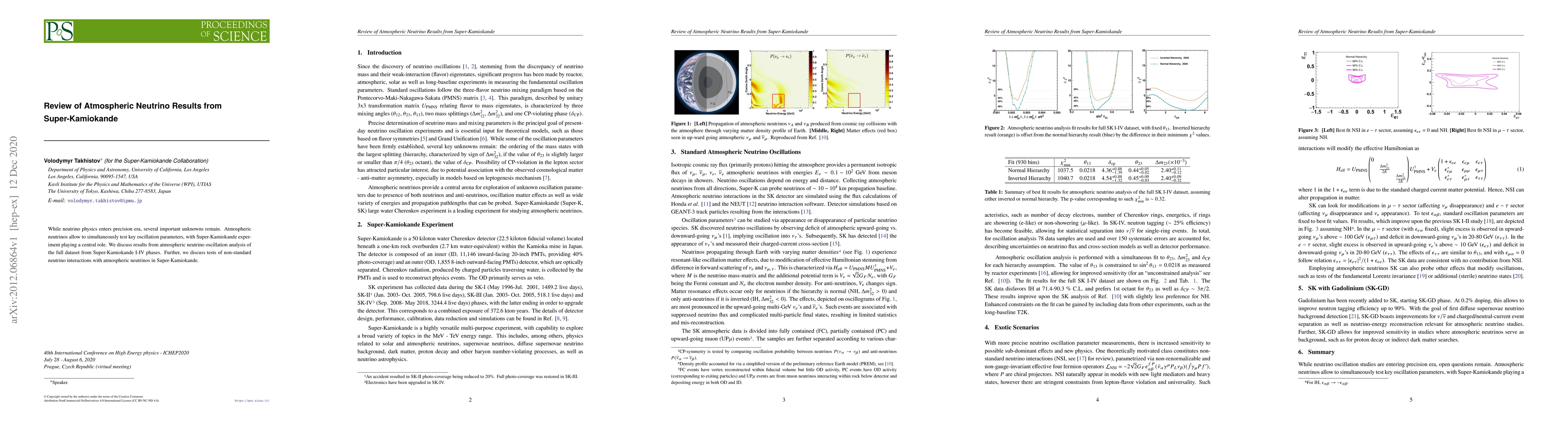 While neutrino physics enters precision era, several important unknowns remain. Atmospheric neutrinos allow to simultaneously test key oscillation parameters, with Super-Kamiokande experiment playing a central role. We discuss results from atmospheric neutrino oscillation analysis of the full dataset from Super-Kamiokande I-IV phases. Further, we discuss tests of non-standard neutrino interactions with atmospheric neutrinos in Super-Kamiokande.