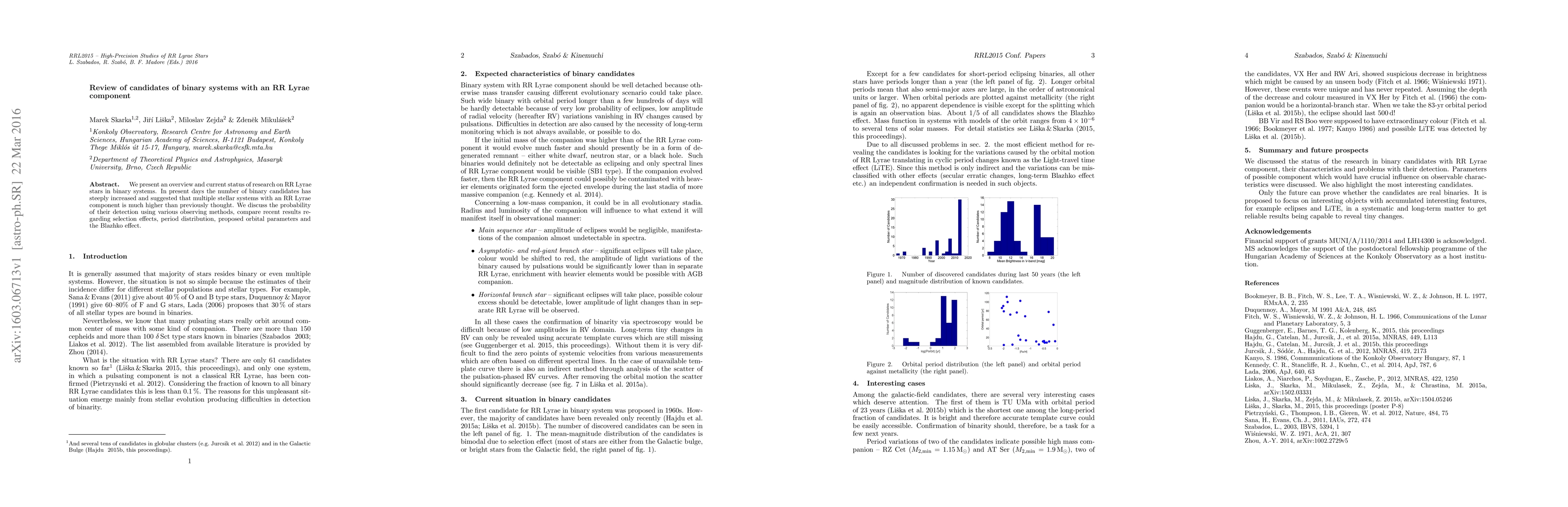 This paper provides an overview of recent research on RR Lyrae stars in binary systems, highlighting a significant increase in identified binary candidates and discussing detection methods, selection effects, period distribution, orbital parameters, and the Blazhko effect.