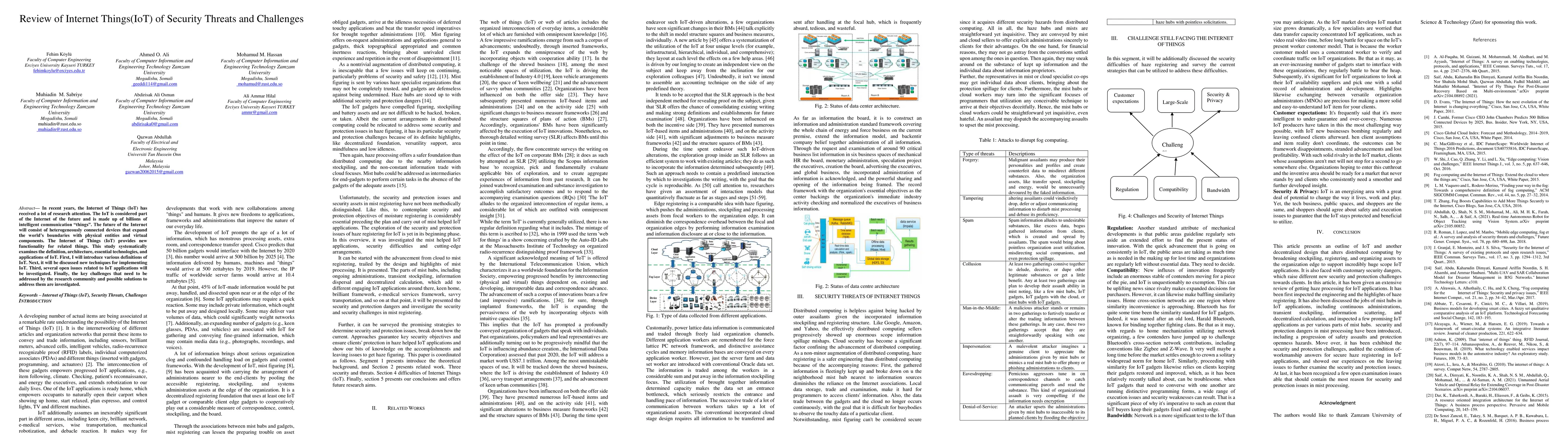 The Internet of Things has received a lot of research attention. It is considered part of the Internet of the future and is made up of billions of intelligent communication. The future of the Internet will consist of heterogeneously connected devices that expand the world boundaries with physical entities and virtual components. It provides new functionality for related things. This study systematically examines the definition, architecture, essential technologies, and applications of the Internet of Things. We will introduce various definitions of the Internet of Things. Then, it will be discussed new techniques for implementing the Internet of Things and several open issues related to the Internet of Things applications will be investigated. Finally, the key challenges that need to be addressed by the research community and possible solutions to address them are investigated.