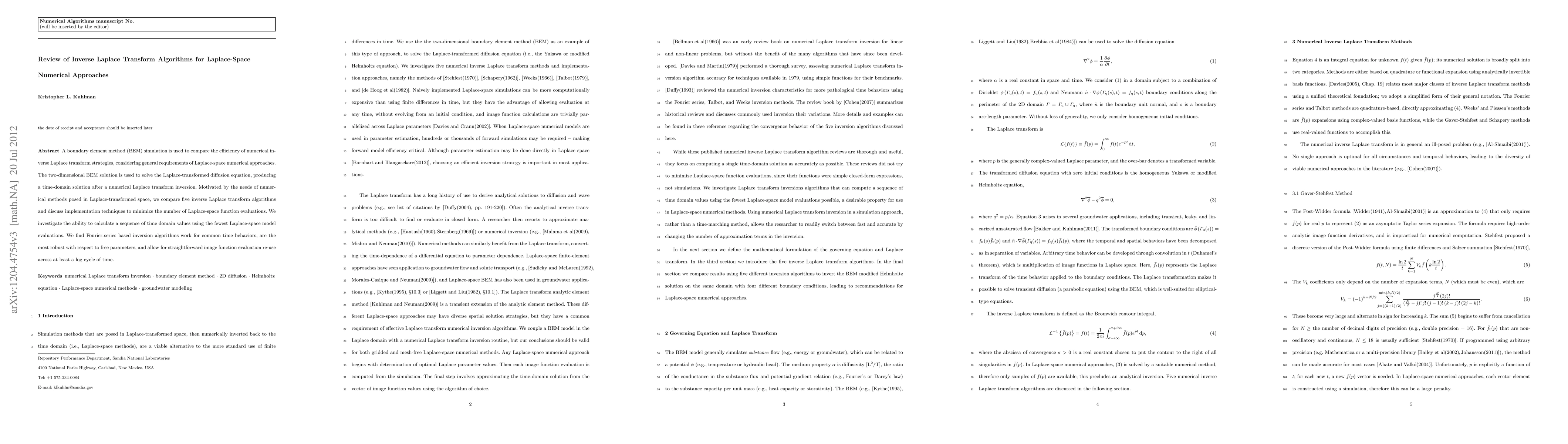 This paper reviews and compares five numerical inverse Laplace transform algorithms, focusing on the efficiency of their implementation in boundary element method simulations. Fourier-series based inversions are found to be the most robust and effective for common time behaviors, allowing reuse of image function evaluations across a wide time range.