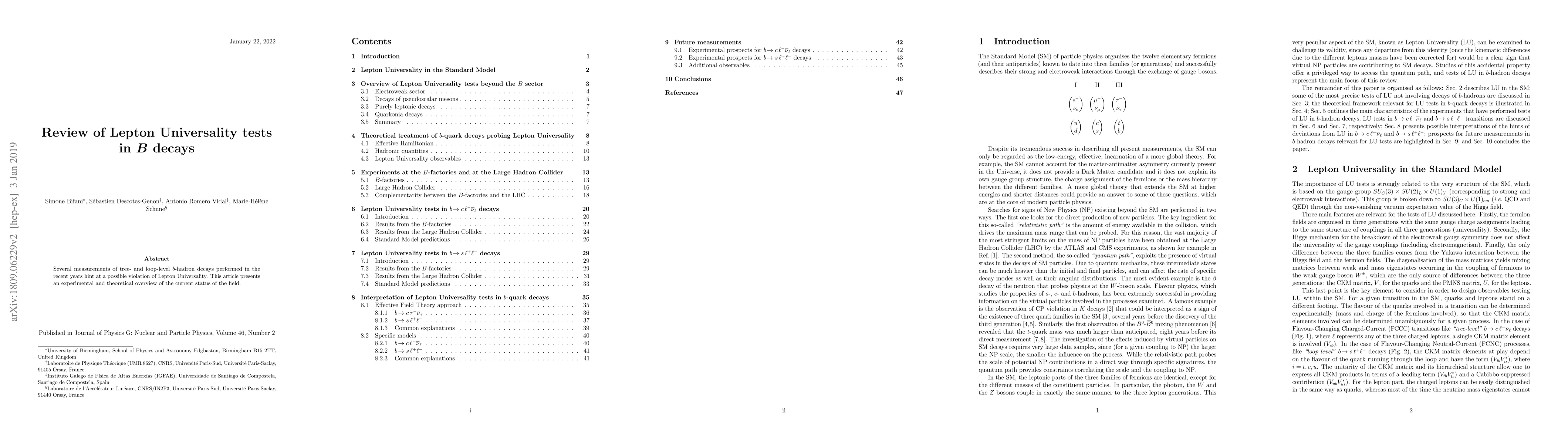 Recent B decay measurements hint at a possible violation of Lepton Universality, prompting an experimental and theoretical review to understand the current status of this field. The paper provides an overview of key findings, methodology, and implications for physics research.