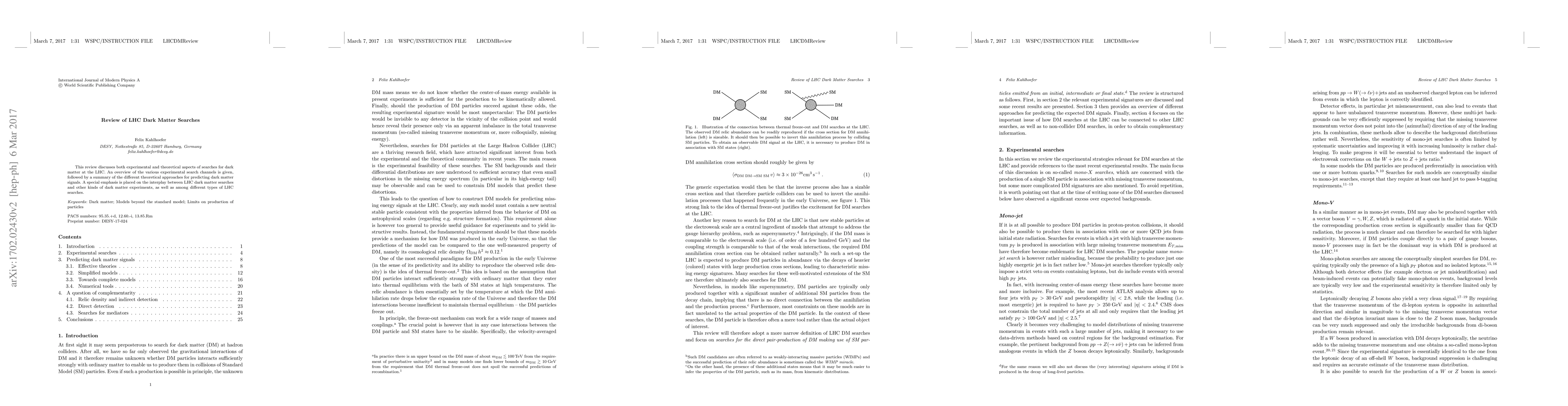 This review explores experimental and theoretical methodologies for dark matter detection at the LHC, summarizing various search channels and theoretical predictions, with a focus on the synergy between LHC results and other dark matter experiments.