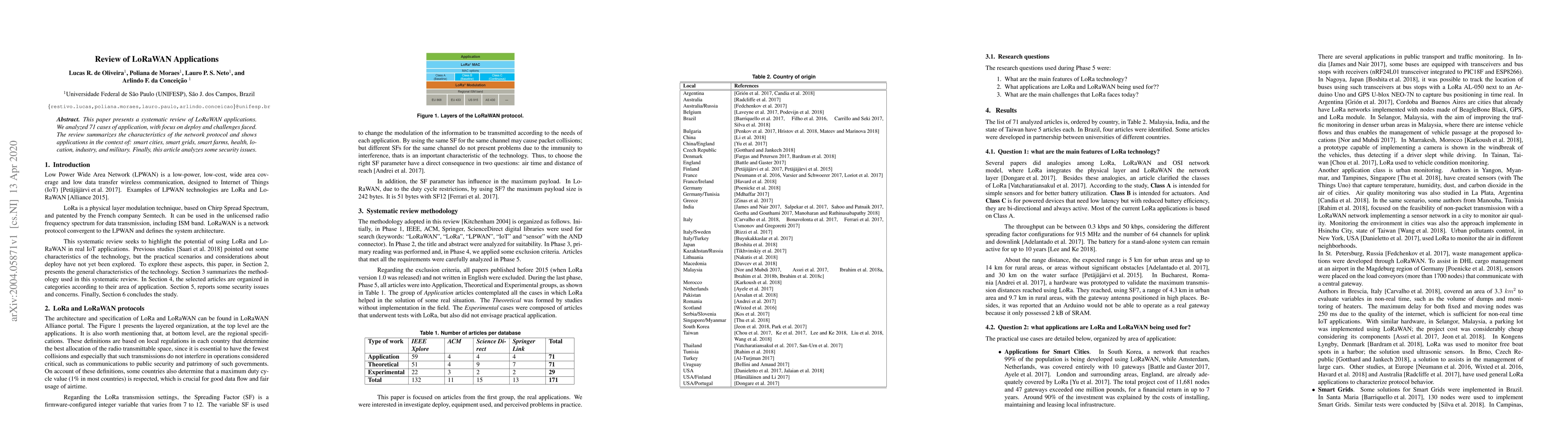 This paper presents a systematic review of LoRaWAN applications. We analyzed 71 cases of application, with a focus on deploy and challenges faced. The review summarizes the characteristics of the network protocol and shows applications in the context of smart cities, smart grids, smart farms, health, location, industry, and military. Finally, this article analyzes some security issues.
