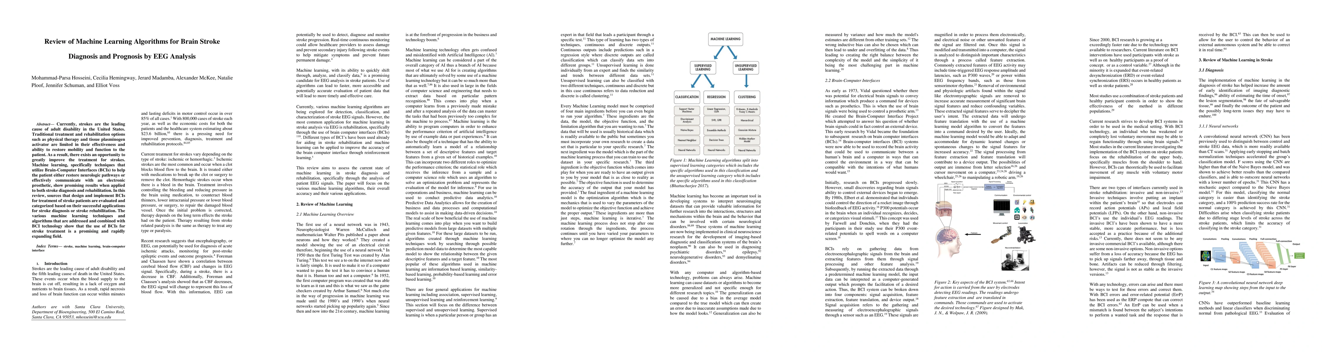This review evaluates machine learning algorithms applied to Brain-Computer Interfaces (BCIs) for improving stroke diagnosis and rehabilitation. It categorizes successful BCI implementations for stroke treatment, highlighting the promising potential of these technologies in enhancing patient recovery.