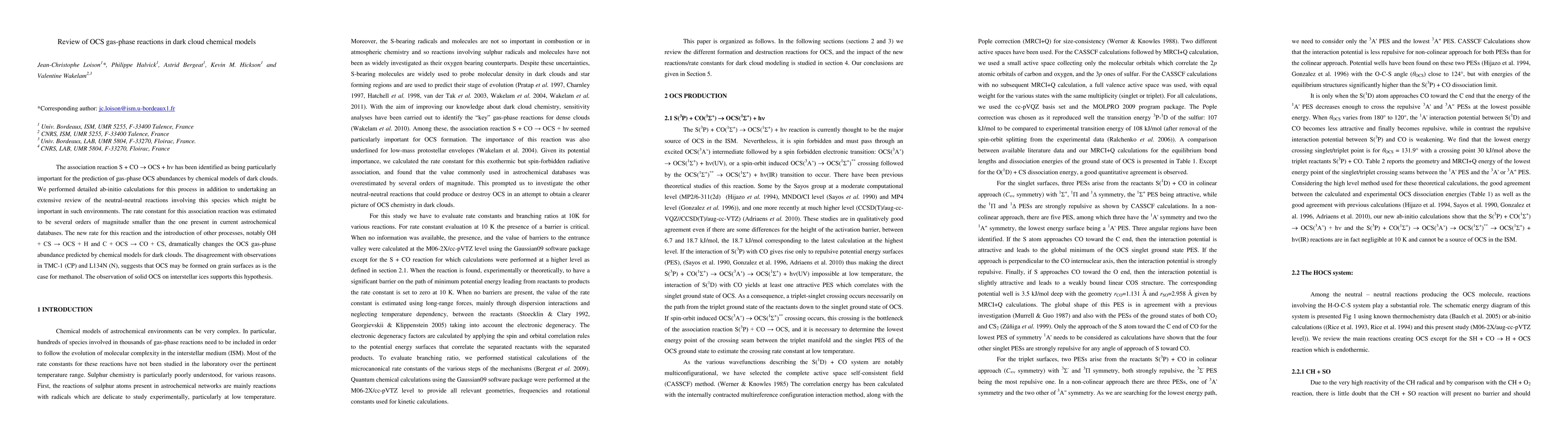 Researchers found that a key gas-phase reaction in dark clouds affects OCS abundance predictions, suggesting it may form on grain surfaces rather than being present in gas phase.