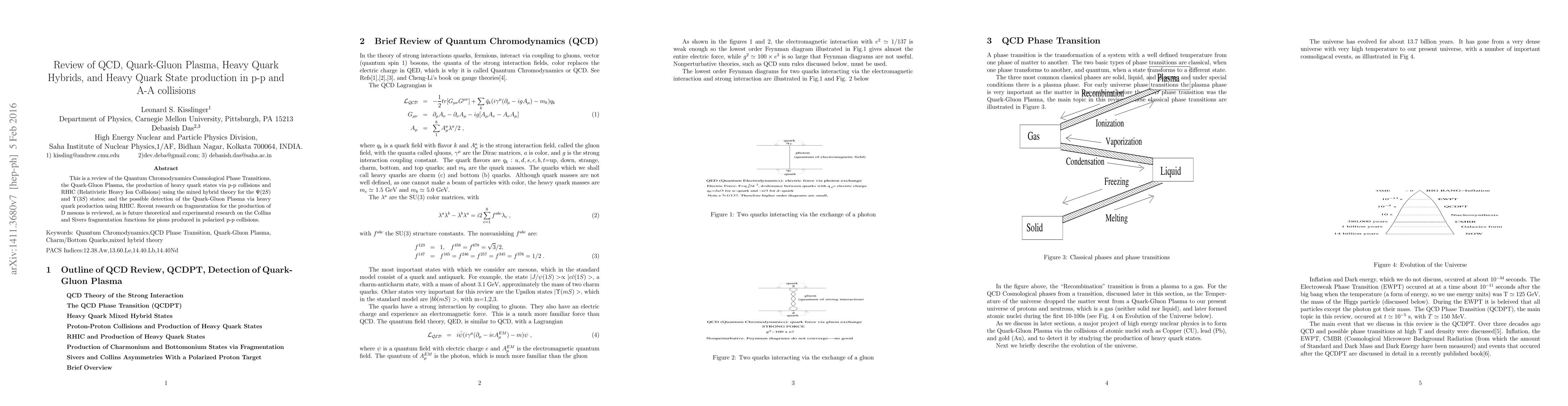 This is a review of the Quantum Chromodynamics Cosmological Phase Transitions, the Quark-Gluon Plasma, the production of heavy quark states via p-p collisions and RHIC (Relativistic Heavy Ion Collisions) using the mixed hybrid theory for the $\Psi(2S)$ and $\Upsilon(3S)$ states; and the possible detection of the Quark-Gluon Plasma via heavy quark production using RHIC. Recent research on fragmentation for the production of D mesons is reviewed, as is future theoretical and experimental research on the Collins and Sivers fragmentation functions for pions produced in polarized p-p collisions.