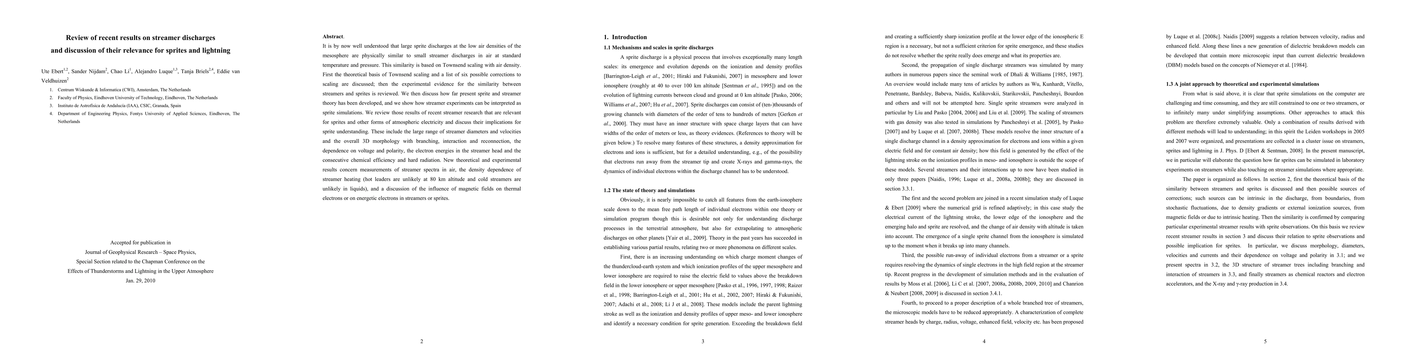 This paper reviews the theoretical basis of Townsend scaling and experimental evidence supporting the similarity between streamer discharges and sprites in the mesosphere. It discusses recent research findings on streamer dynamics and their implications for understanding sprites, including their morphology, voltage dependence, and the role of magnetic fields.