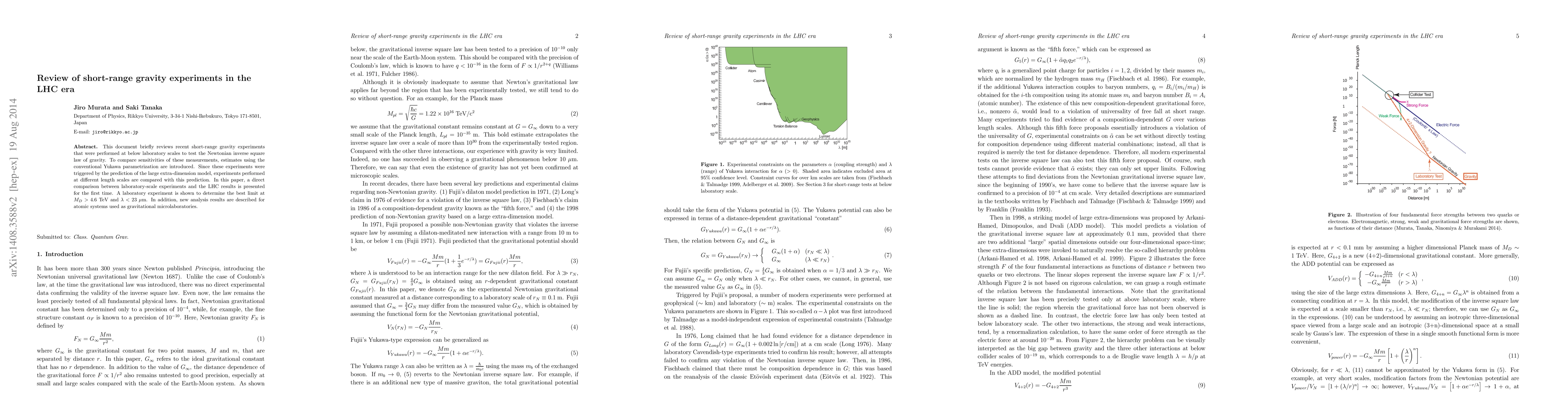 This document briefly reviews recent short-range gravity experiments that were performed at below laboratory scales to test the Newtonian inverse square law of gravity. To compare sensitivities of these measurements, estimates using the conventional Yukawa parametrization are introduced. Since these experiments were triggered by the prediction of the large extra-dimension model, experiments performed at different length scales are compared with this prediction. In this paper, a direct comparison between laboratory-scale experiments and the LHC results is presented for the first time. A laboratory experiment is shown to determine the best limit at $M_D > 4.6 \;\rm{TeV}$ and $\lambda<23 \;\mu \rm{m}$. In addition, new analysis results are described for atomic systems used as gravitational microlaboratories.