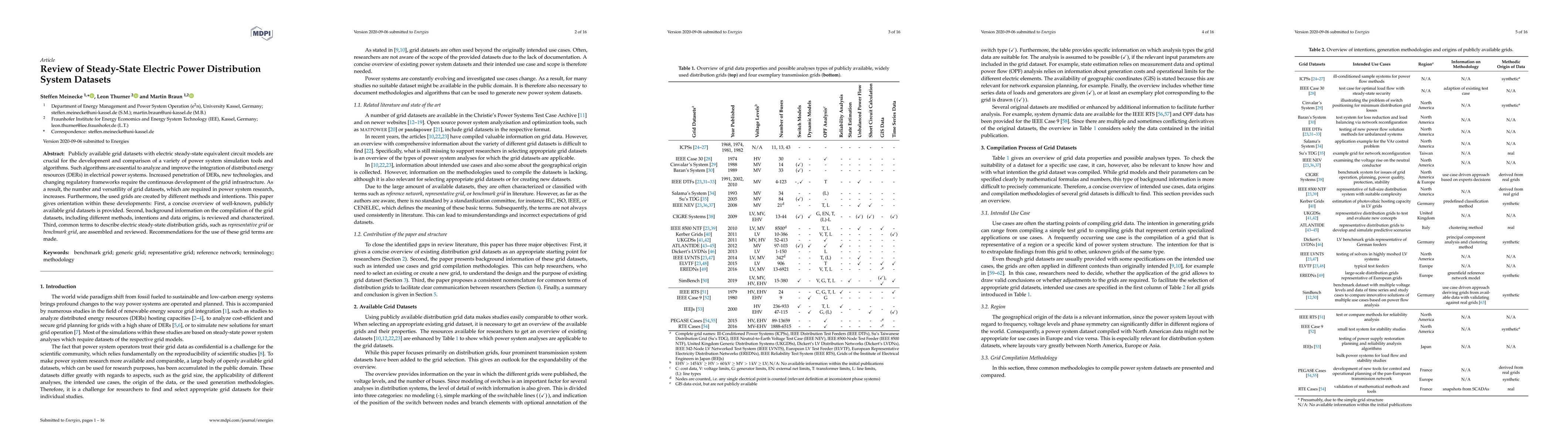 This paper provides an overview of publicly available steady-state electric power distribution system datasets, crucial for power system research and simulation tool development. It reviews the compilation methods, intentions, and origins of these datasets, and offers recommendations for their terminology.