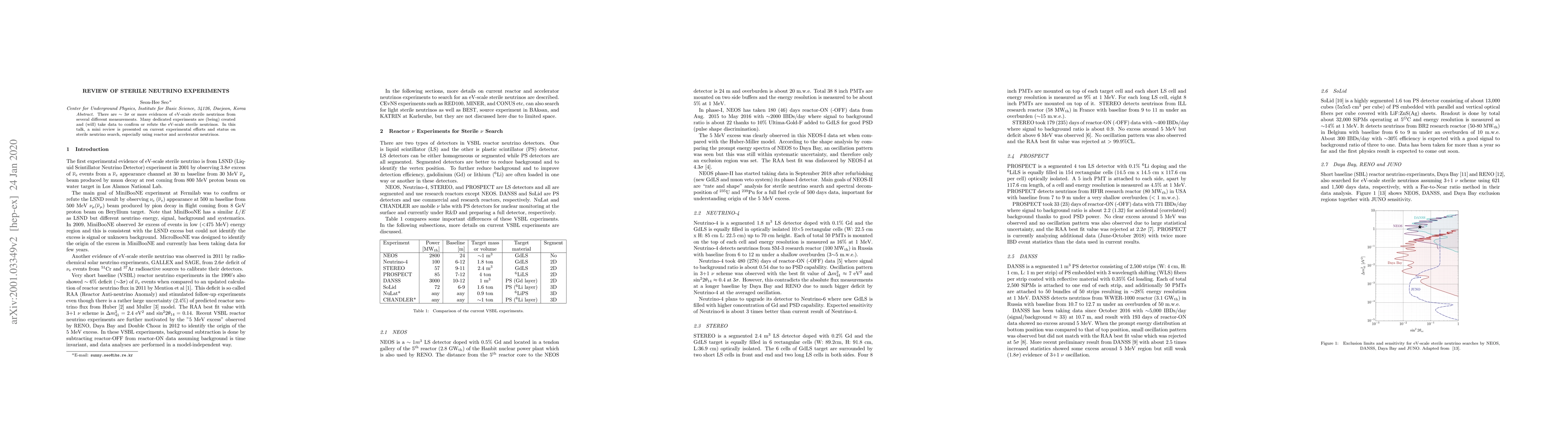 There are $\sim3\sigma$ or more evidence of eV-scale sterile neutrinos from several different measurements. Many dedicated experiments are (being) created and (will) take data to confirm or refute the eV-scale sterile neutrinos. In this talk, a mini review is presented on current experimental efforts and status on sterile neutrino search, especially using reactor and accelerator neutrinos.