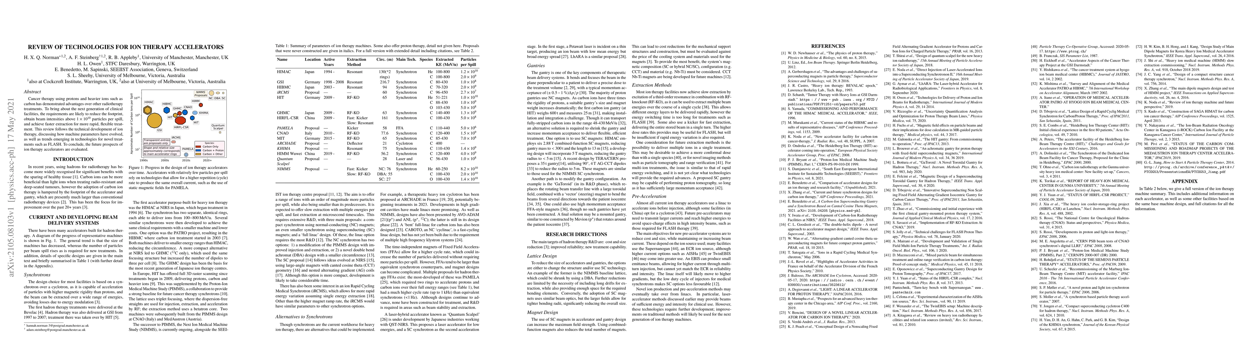 This review examines the technological advancements in ion therapy accelerators, focusing on reducing footprint, increasing beam intensities, and achieving faster extraction for improved cancer treatment. It also explores emerging trends and future prospects for next-generation clinical facilities.