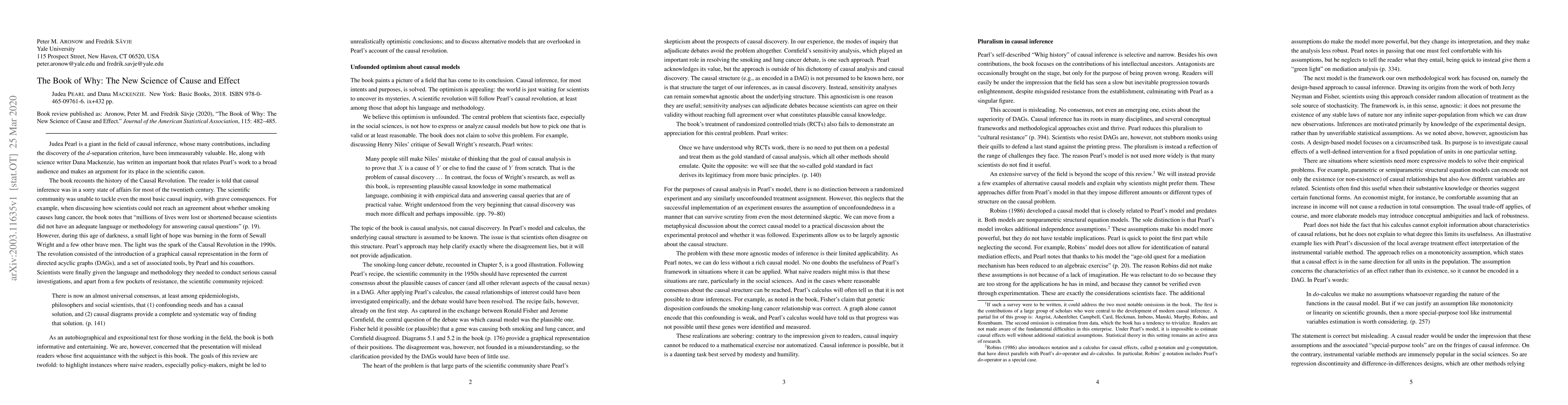 This review examines "The Book of Why" by Judea Pearl and Peter Spirtes, highlighting its exploration of causal inference and the development of causal diagrams to understand cause and effect relationships. The authors commend the book for its innovative approach to statistical analysis and its implications for various scientific fields.