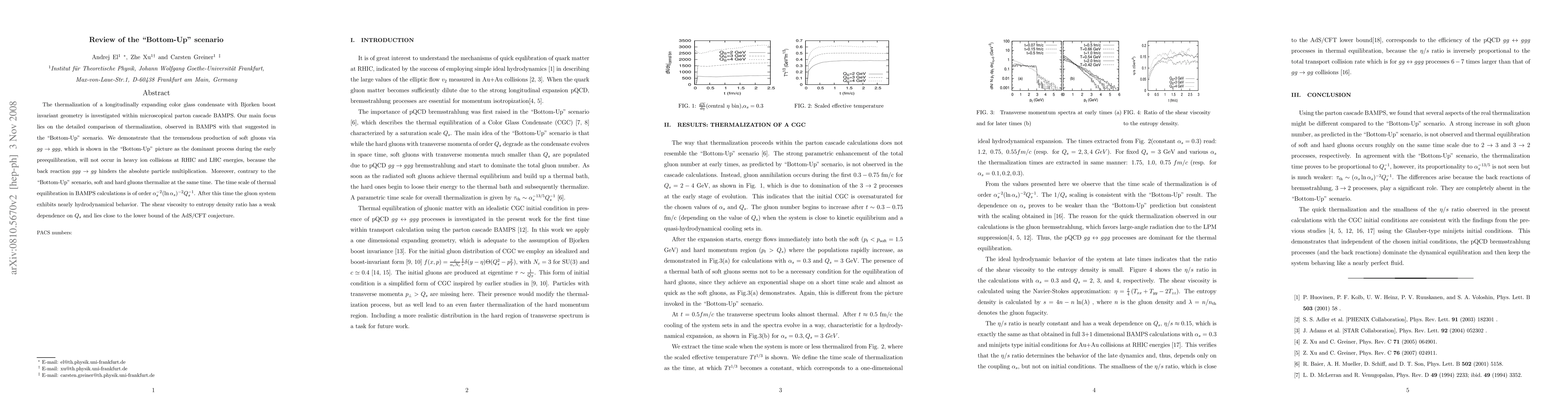 Thermalization of a longitudinally expanding color glass condensate with Bjorken boost invariant geometry is investigated within parton cascade BAMPS. Our main focus lies on the detailed comparison of thermalization, observed in BAMPS with that suggested in the Bottom-Up scenario. We demonstrate that the tremendous production of soft gluons via $gg \to ggg$, which is shown in the Bottom-Up picture as the dominant process during the early preequilibration, will not occur in heavy ion collisions at RHIC and LHC energies, because the back reaction $ggg\to gg$ hinders the absolute particle multiplication. Moreover, contrary to the Bottom-Up scenario, soft and hard gluons thermalize at the same time. The time scale of thermal equilibration in BAMPS calculations is of order $\as^{-2} (\ln \as)^{-2} Q_s^{-1}$. After this time the gluon system exhibits nearly hydrodynamic behavior. The shear viscosity to entropy density ratio has a weak dependence on $Q_s$ and lies close to the lower bound of the AdS/CFT conjecture.