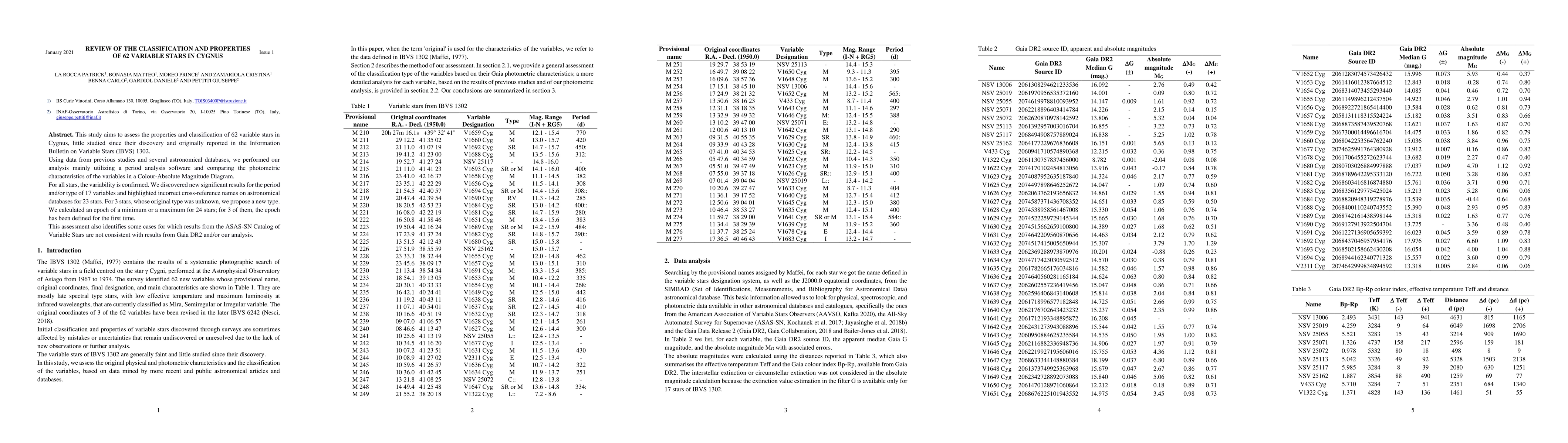 This study aims to assess the properties and classification of 62 variable stars in Cygnus, little studied since their discovery and originally reported in the Information Bulletin on Variable Stars (IBVS) 1302. Using data from previous studies and several astronomical databases, we performed our analysis mainly utilizing a period analysis software and comparing the photometric characteristics of the variables in a Colour-Absolute Magnitude Diagram. For all stars, the variability is confirmed. We discovered new significant results for the period and/or type of 17 variables and highlighted incorrect cross-reference names on astronomical databases for 23 stars. For 3 stars, whose original type was unknown, we propose a new type. We calculated an epoch of a minimum or a maximum for 24 stars; for 3 of them, the epoch has been defined for the first time. This assessment also identifies some cases for which results from the ASAS-SN Catalog of Variable Stars are not consistent with results from Gaia DR2 and/or our analysis.