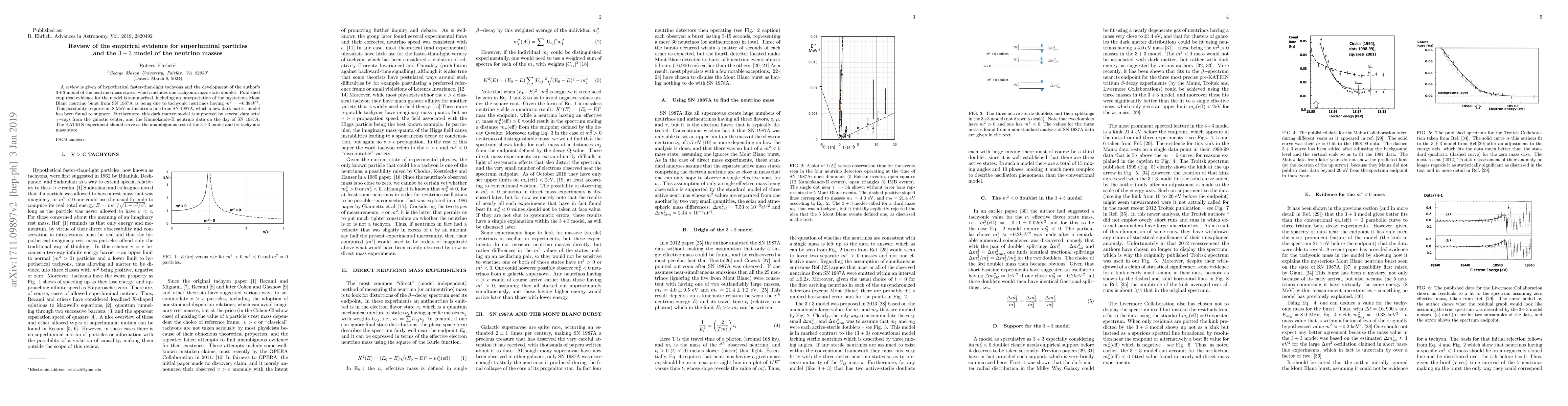 The paper reviews evidence for hypothetical faster-than-light neutrinos and presents a model that includes a tachyonic (superluminal) neutrino state, suggesting it explains certain mysterious neutrino signals from supernova SN 1987A. It also discusses how upcoming experiments like KATRIN could confirm or refute this model, with implications for dark matter research.