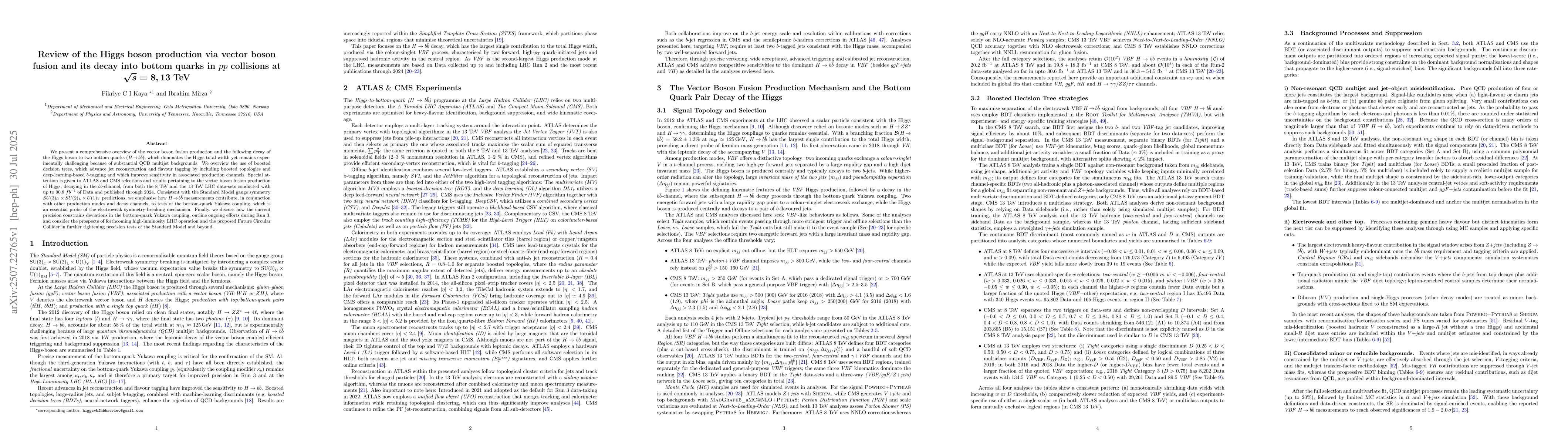 The research provides a comprehensive review of Higgs boson production via vector boson fusion (VBF) and its decay into bottom quarks in $pp$ collisions at $\sqrt{s}=8,13$ TeV, focusing on experimental challenges and advancements in jet reconstruction and flavour tagging using boosted decision trees.