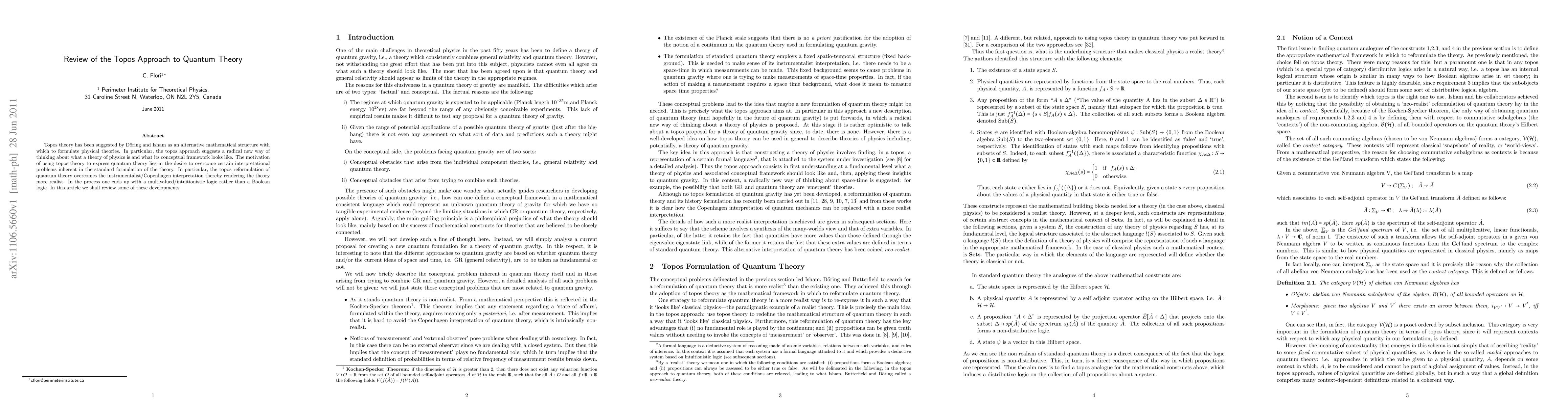 This paper reviews the topos approach to quantum theory, proposed by Döring and Isham, which uses topos theory to provide a more realist interpretation, overcoming issues with the standard instrumentalist interpretation, and employs a multivalued, intuitionistic logic instead of Boolean logic.