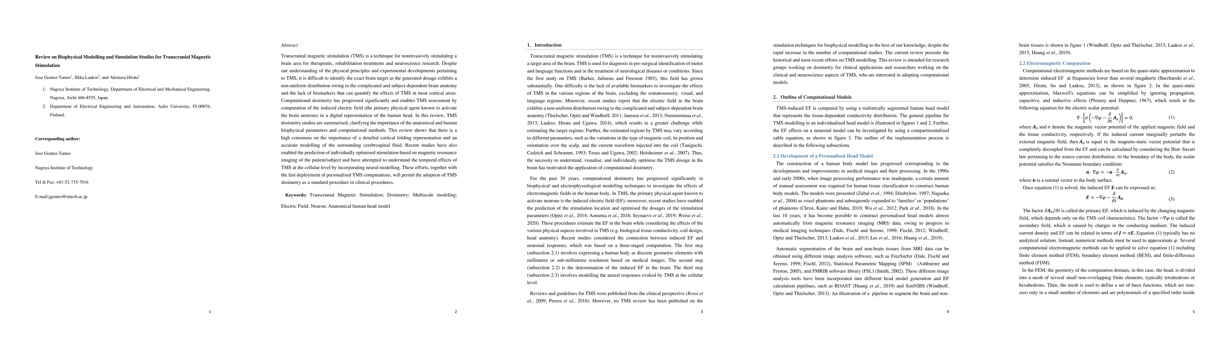 This review summarizes advancements in biophysical modelling and simulation for transcranial magnetic stimulation (TMS), emphasizing the importance of detailed cortical representations and cerebrospinal fluid modelling. It highlights the potential for personalized TMS based on individual MRI and the integration of neural modelling to predict cellular effects, paving the way for TMS dosimetry standardization in clinical practice.