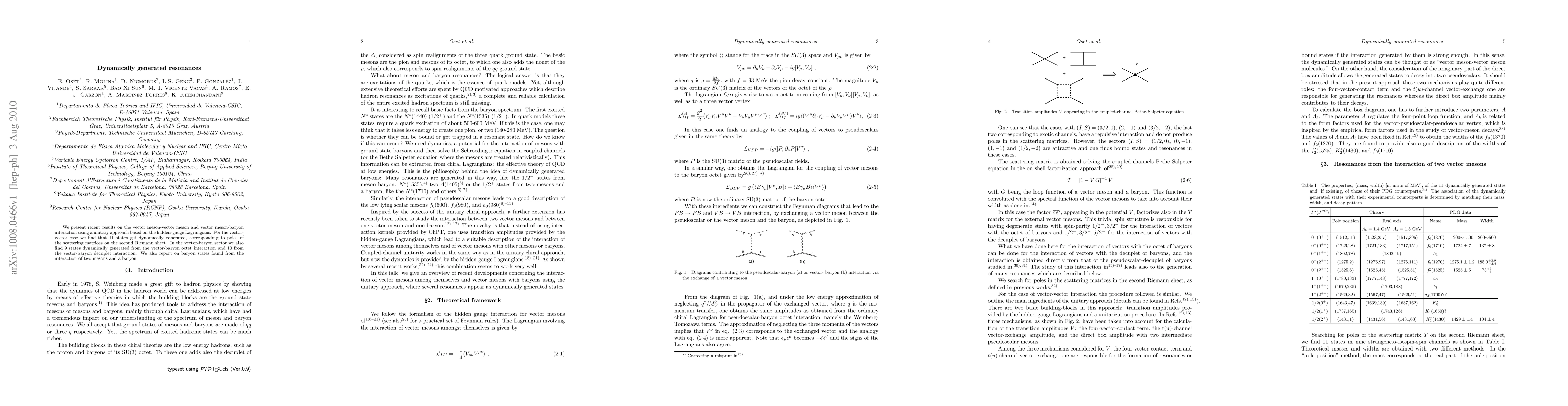 Researchers found 11 dynamically generated vector meson-vector meson states and 9-10 baryon states through a unitary approach to particle interactions.