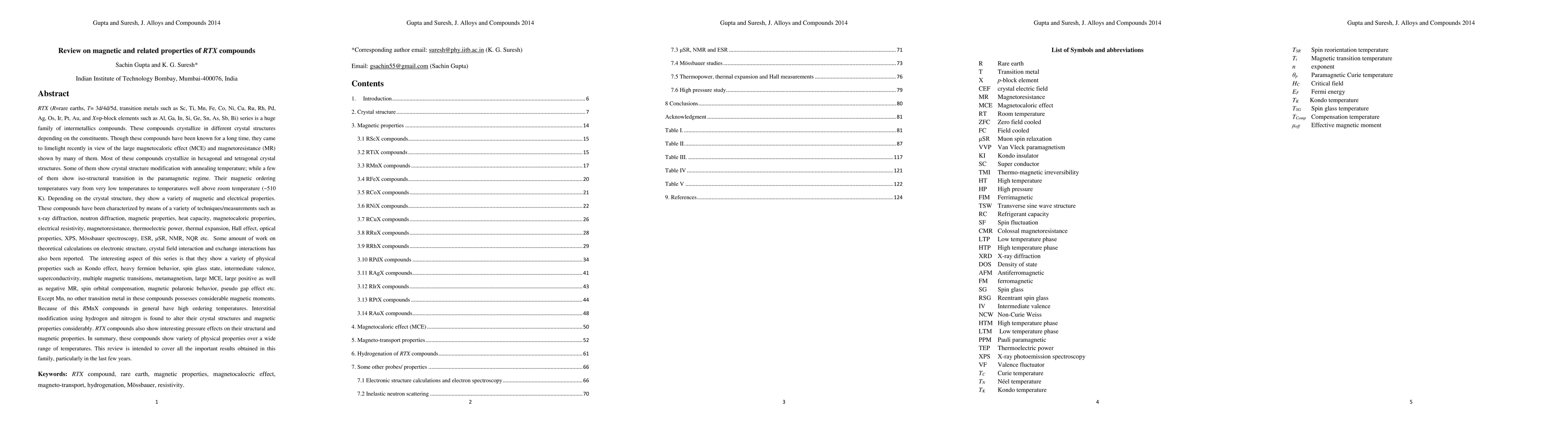 RTX (R=rare earths, T= 3d/4d/5d, transition metals such as Sc, Ti, Mn, Fe, Co, Ni, Cu, Ru, Rh, Pd, Ag, Os, Ir, Pt, Au, and X=p-block elements such as Al, Ga, In, Si, Ge, Sn, As, Sb, Bi) series is a huge family of intermetallics compounds. These compounds crystallize in different crystal structures depending on the constituents. Though these compounds have been known for a long time, they came to limelight recently in view of the large magnetocaloric effect (MCE) and magnetoresistance (MR) shown by many of them. Most of these compounds crystallize in hexagonal and tetragonal crystal structures. Some of them show crystal structure modification with annealing temperature; while a few of them show iso-structural transition in the paramagnetic regime. Their magnetic ordering temperatures vary from very low temperatures to temperatures well above room temperature (~510 K). Depending on the crystal structure, they show a variety of magnetic and electrical properties. These compounds have been characterized by means of a variety of techniques/measurements such as x-ray diffraction, neutron diffraction, magnetic properties, heat capacity, magnetocaloric properties, electrical resistivity, magnetoresistance, thermoelectric power, thermal expansion, Hall effect, optical properties, XPS, M\"ossbauer spectroscopy, ESR, {\mu}SR, NMR, NQR etc. Some amount of work on theoretical calculations on electronic structure, crystal field interaction and exchange interactions has also been reported. The interesting aspect of this series is that they show a variety of physical properties such as Kondo effect, heavy fermion behavior, spin glass state, intermediate valence, superconductivity, multiple magnetic transitions, metamagnetism, large MCE, large positive as well as negative MR, spin orbital compensation, magnetic polaronic behavior, pseudo gap effect etc.