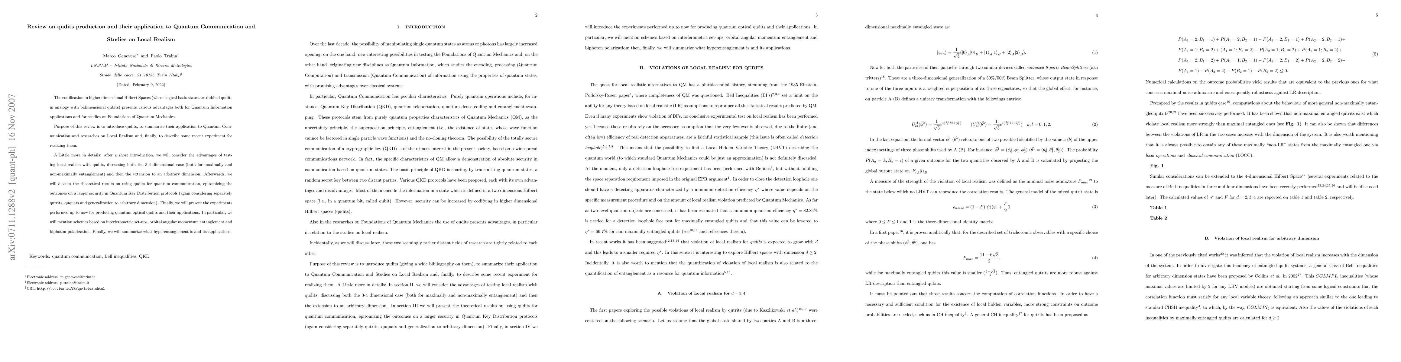This review explores the production and applications of qudits, higher-dimensional quantum states, in quantum communication and local realism studies. It highlights the advantages of using qudits for enhanced security in quantum key distribution and discusses recent experiments involving optical qudits, including interferometric setups and orbital angular momentum entanglement.