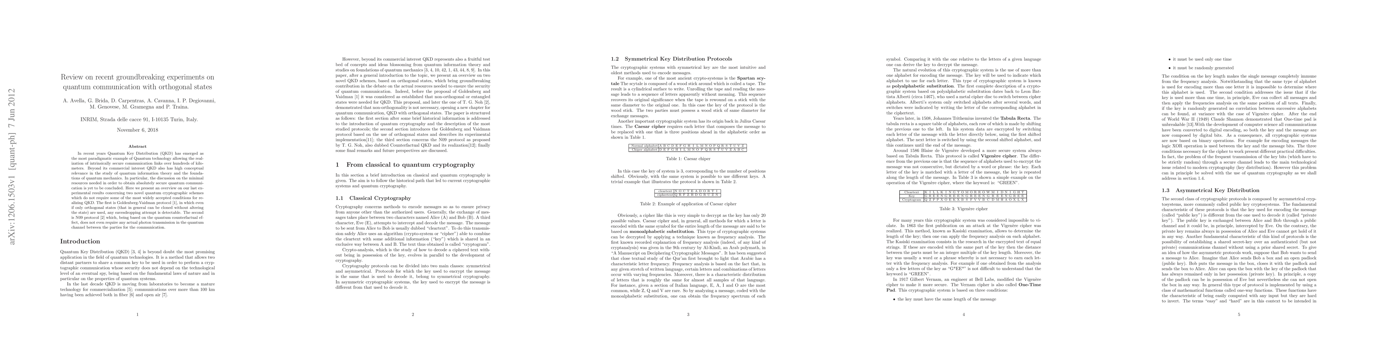 This paper reviews recent experimental breakthroughs in quantum communication using orthogonal states, highlighting two novel cryptographic schemes: the Goldenberg-Vaidman protocol that detects eavesdropping with orthogonal states, and the N09 protocol which leverages the quantum counterfactual effect without requiring photon transmission.