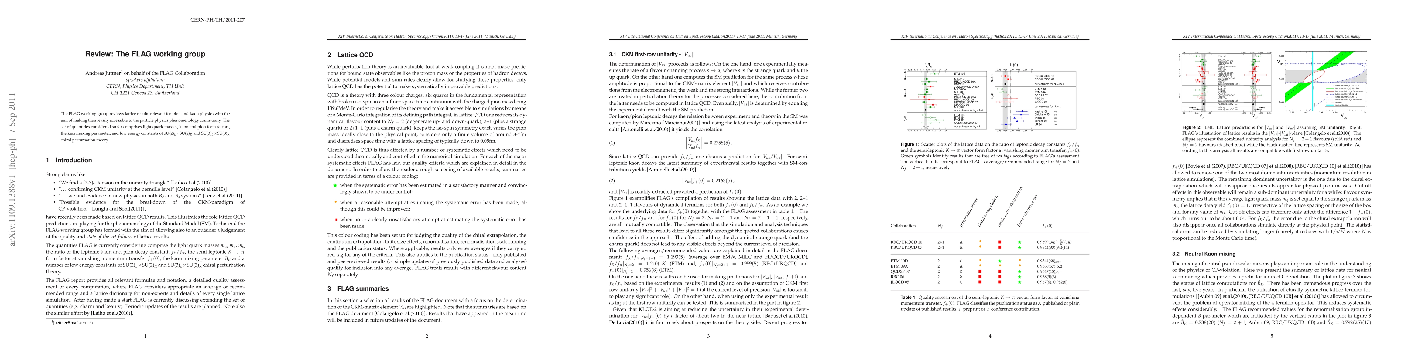 The FLAG working group reviews lattice results relevant for pion and kaon physics with the aim of making them easily accessible to the particle physics phenomenology community. The set of quantities considered so far comprises light quark masses, kaon and pion form factors, the kaon mixing parameter, and low energy constants of SU(2)_L X SU(2)_R and SU(3)_L X SU(3)_R chiral perturbation theory.