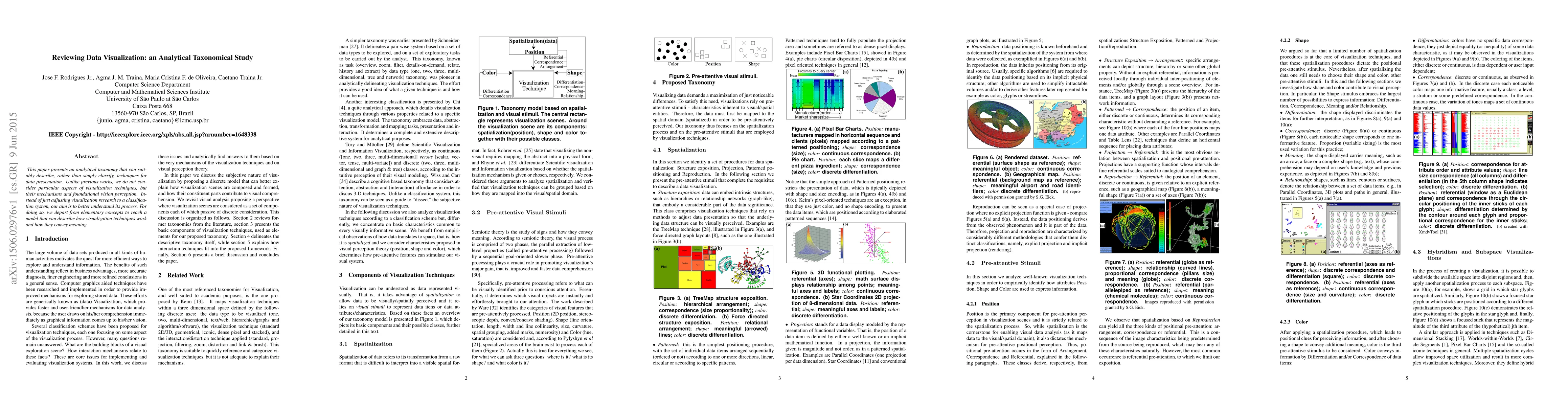 This paper presents an analytical taxonomy that can suitably describe, rather than simply classify, techniques for data presentation. Unlike previous works, we do not consider particular aspects of visualization techniques, but their mechanisms and foundational vision perception. Instead of just adjusting visualization research to a classification system, our aim is to better understand its process. For doing so, we depart from elementary concepts to reach a model that can describe how visualization techniques work and how they convey meaning.