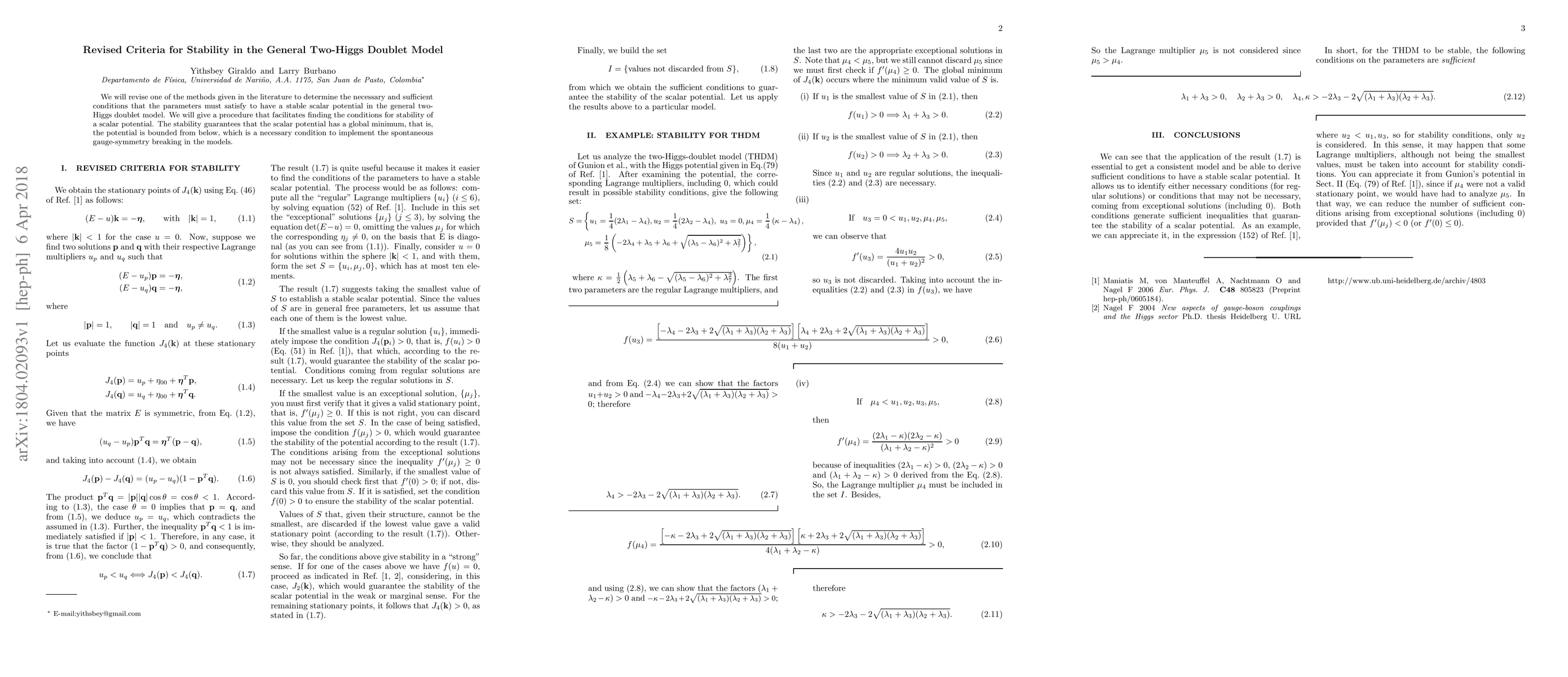 This paper revises a method to establish the necessary and sufficient conditions for a stable scalar potential in the general two-Higgs doublet model, ensuring a global minimum and facilitating spontaneous gauge-symmetry breaking. The proposed procedure simplifies the determination of these stability conditions.