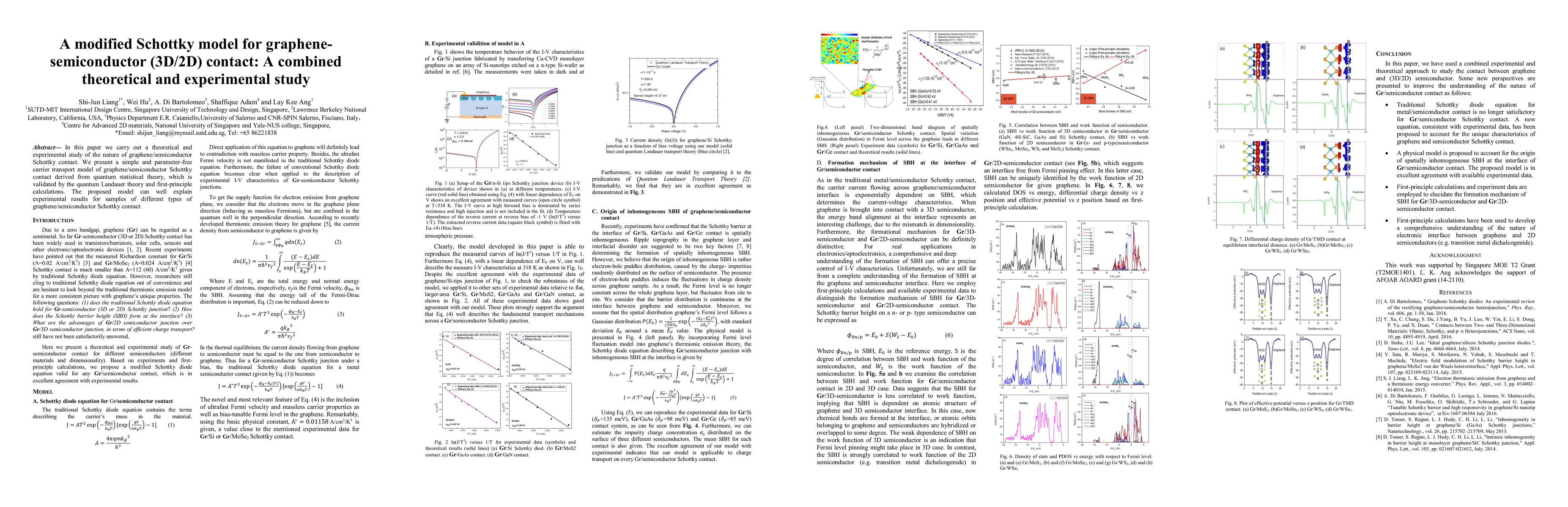 This paper proposes a parameter-free carrier transport model for graphene-semiconductor Schottky junctions derived from quantum statistical theory, validated by quantum Landauer theory and first-principle calculations, and successfully explains experimental results across various graphene/semiconductor contacts.
