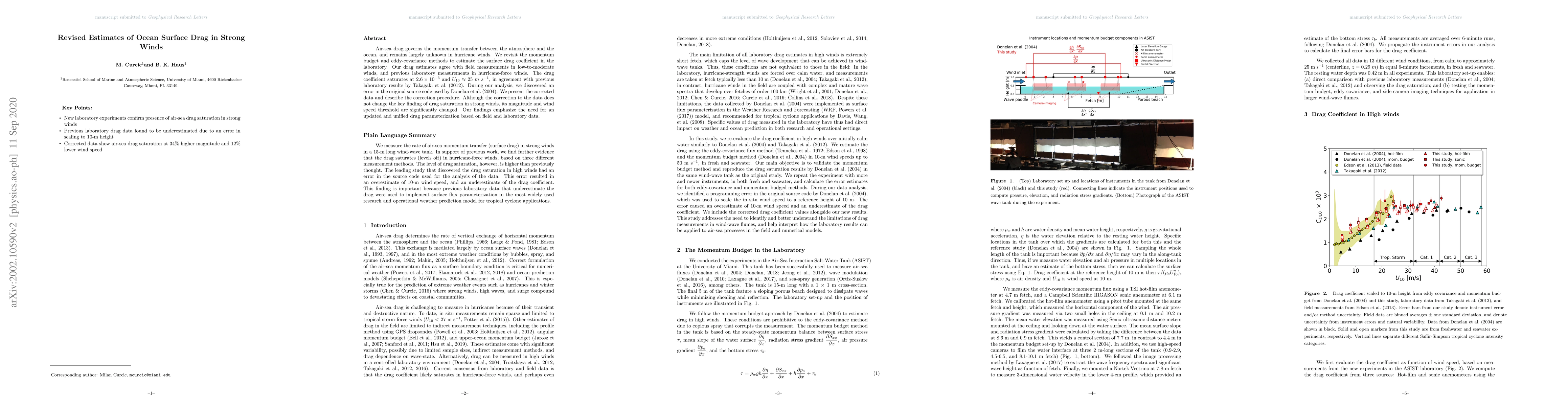Air-sea drag governs the momentum transfer between the atmosphere and the ocean, and remains largely unknown in hurricane winds. We revisit the momentum budget and eddy-covariance methods to estimate the surface drag coefficient in the laboratory. Our drag estimates agree with field measurements in low-to-moderate winds, and previous laboratory measurements in hurricane-force winds. The drag coefficient saturates at $2.6 \times 10^{-3}$ and $U_{10} \approx 25\ m\ s^{-1}$, in agreement with previous laboratory results by Takagaki et al. (2012). During our analysis, we discovered an error in the original source code used by Donelan et al. (2004). We present the corrected data and describe the correction procedure. Although the correction to the data does not change the key finding of drag saturation in strong winds, its magnitude and wind speed threshold are significantly changed. Our findings emphasize the need for an updated and unified drag parameterization based on field and laboratory data.