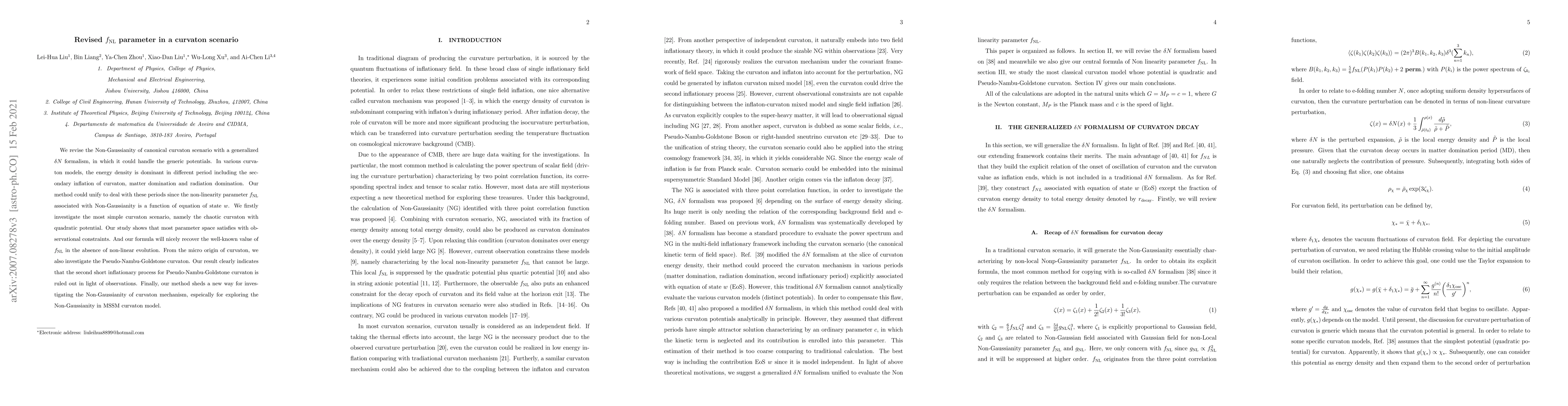 This paper revises the Non-Gaussianity ($f_{\rm NL}$) in the canonical curvaton scenario using a generalized $\delta N$ formalism, showing that it can handle various potentials and periods. The study finds that most parameter spaces meet observational constraints, especially for chaotic curvaton, while ruling out a secondary inflationary process for Pseudo-Nambu-Goldstone curvaton based on observations.