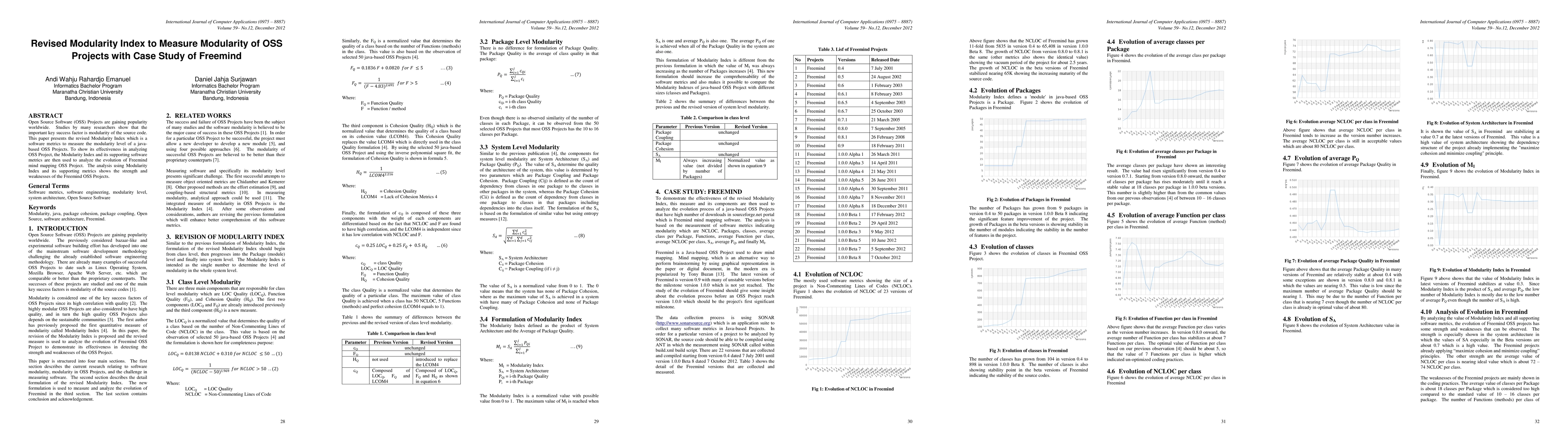 Open Source Software (OSS) Projects are gaining popularity worldwide. Studies by many researchers show that the important key success factor is modularity of the source code. This paper presents the revised Modularity Index which is a software metrics to measure the modularity level of a javabased OSS Projects. To show its effectiveness in analyzing OSS Project, the Modularity Index and its supporting software metrics are then used to analyze the evolution of Freemind mind mapping OSS Project. The analysis using Modularity Index and its supporting metrics shows the strength and weaknesses of the Freemind OSS Projects.