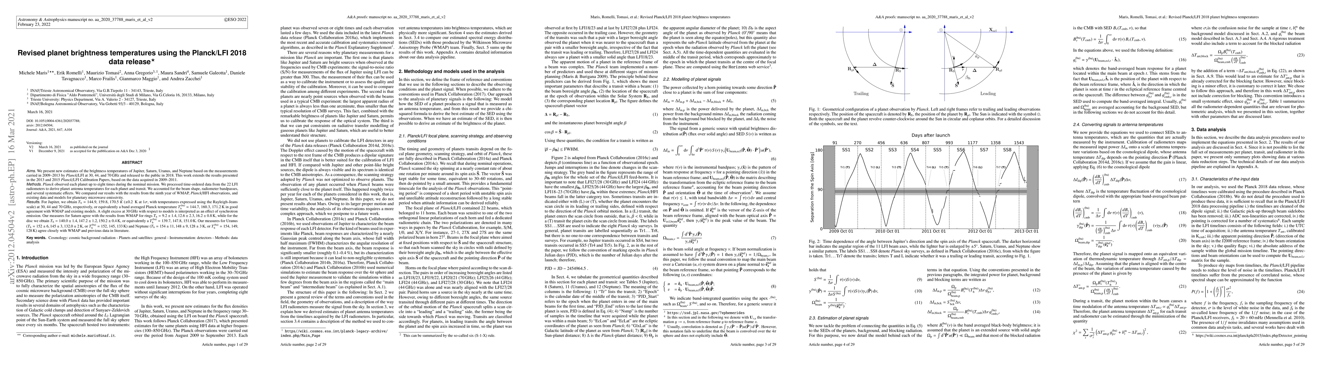 We present new estimates of the brightness temperatures of Jupiter, Saturn, Uranus, and Neptune based on the measurements carried in 2009--2013 by PLANCK/LFI at 30, 44, and 70 GHz and released to the public in 2018. This work extends the results presented in the 2013 and 2015 PLANCK/LFI Calibration Papers, based on the data acquired in 2009--2011. PLANCK observed each planet up to eight times during the nominal mission. We processed time-ordered data from the 22 LFI radiometers to derive planet antenna temperatures for each planet and transit. We accounted for the beam shape, radiometer bandpasses, and several systematic effects. We compared our results with the results from the ninth year of WMAP, PLANCK/HFI observations, and existing data and models for planetary microwave emissivity. For Jupiter, we obtain Tb = 144.9, 159.8, 170.5 K (+/- 0.2 K at 1 sigma, with temperatures expressed using the Rayleigh-Jeans scale) at 30, 44 and 70 GHz, respectively, or equivalently a band averaged Planck temperature TbBA=144.7$, 160.3, 171.2 K in good agreement with WMAP and existing models. A slight excess at 30 GHz with respect to models is interpreted as an effect of synchrotron emission. Our measures for Saturn agree with the results from WMAP for rings Tb = 9.2 +/- 1.4, 12.6 +/- 2.3, 16.2 +/- 0.8 K, while for the disc we obtain Tb = 140.0 +/- 1.4, 147.2 +/- 1.2, 150.2 +/- 0.4 K, or equivalently a TbBA=139.7, 147.8, 151.0 K. Our measures for Uranus (Tb = 152 +/- 6, 145 +/- 3, 132.0 +/- 2 K, or TbBA=152, 145, 133 K and Neptune Tb = 154 +/- 11, 148 +/- 9, 128 +/- 3 K, or TbBA=154 , 149, 128 K) agree closely with WMAP and previous data in literature.