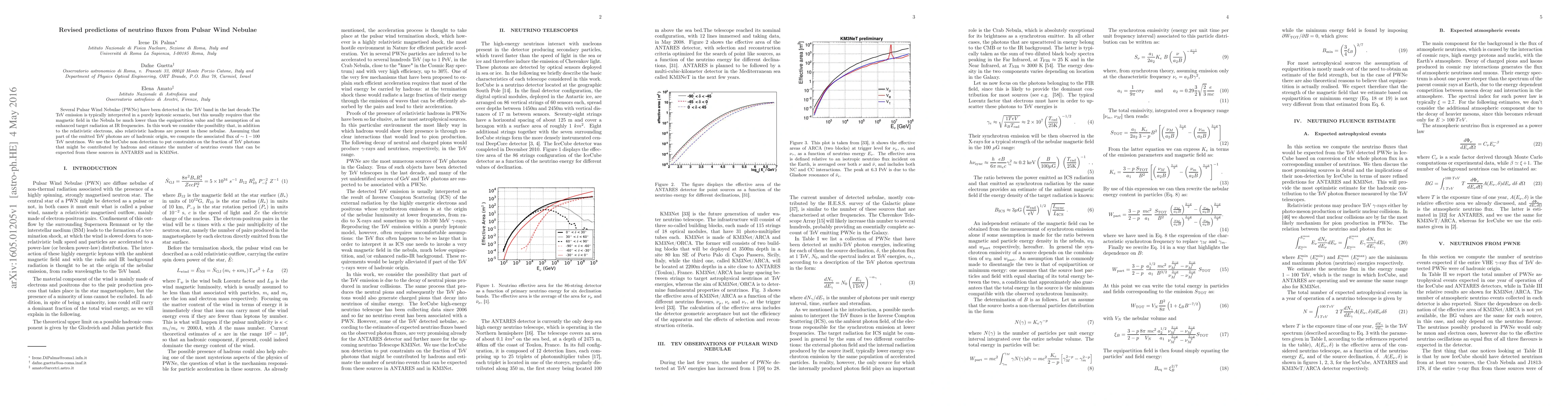 This paper explores the potential contribution of relativistic hadrons in Pulsar Wind Nebulae (PWNe) to TeV photon emission, suggesting a hadronic origin for some TeV photons. It calculates the associated neutrino flux and uses IceCube data to constrain the hadronic fraction, estimating future neutrino detection prospects for ANTARES and KM3Net.