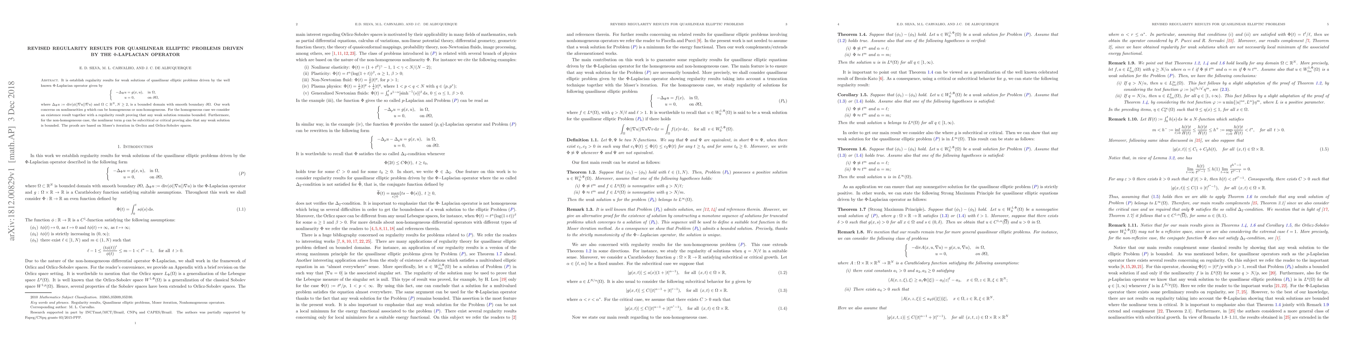 It is establish regularity results for weak solutions of quasilinear elliptic problems driven by the well known $\Phi$-Laplacian operator given by \begin{equation*} \left\{\ \begin{array}{cl} \displaystyle-\Delta_\Phi u= g(x,u), & \mbox{in}~\Omega, u=0, & \mbox{on}~\partial \Omega, \end{array} \right. \end{equation*} where $\Delta_{\Phi}u :=\mbox{div}(\phi(|\nabla u|)\nabla u)$ and $\Omega\subset\mathbb{R}^{N}, N \geq 2,$ is a bounded domain with smooth boundary $\partial\Omega$. Our work concerns on nonlinearities $g$ which can be homogeneous or non-homogeneous. For the homogeneous case we consider an existence result together with a regularity result proving that any weak solution remains bounded. Furthermore, for the non-homogeneous case, the nonlinear term $g$ can be subcritical or critical proving also that any weak solution is bounded. The proofs are based on Moser's iteration in Orclicz and Orlicz-Sobolev spaces.